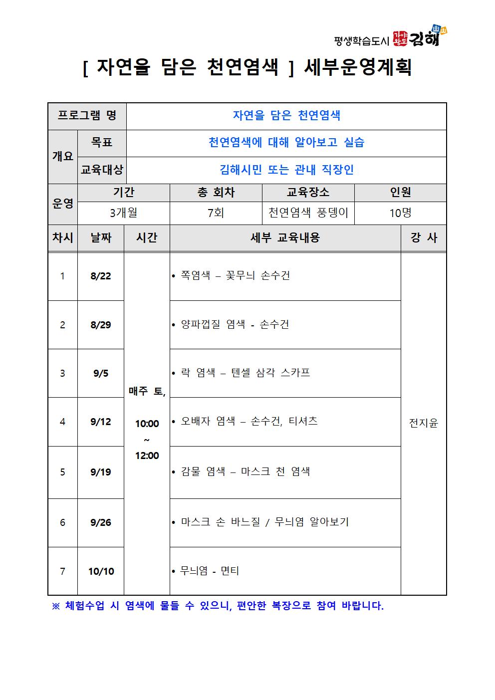 2. 코로나19로 인하여 정원 10명 이하로 진행되는 점 양해바랍니다.