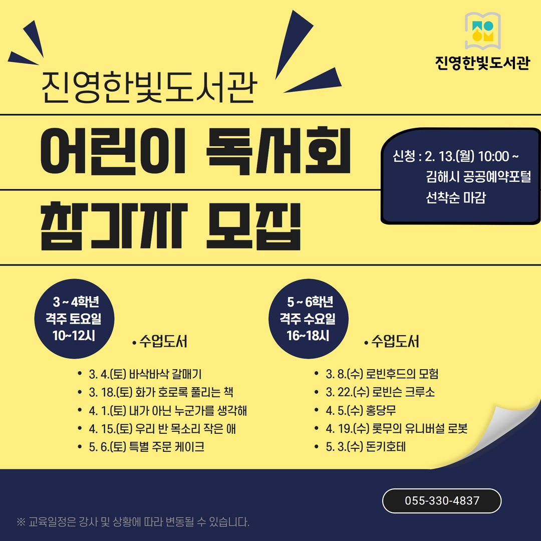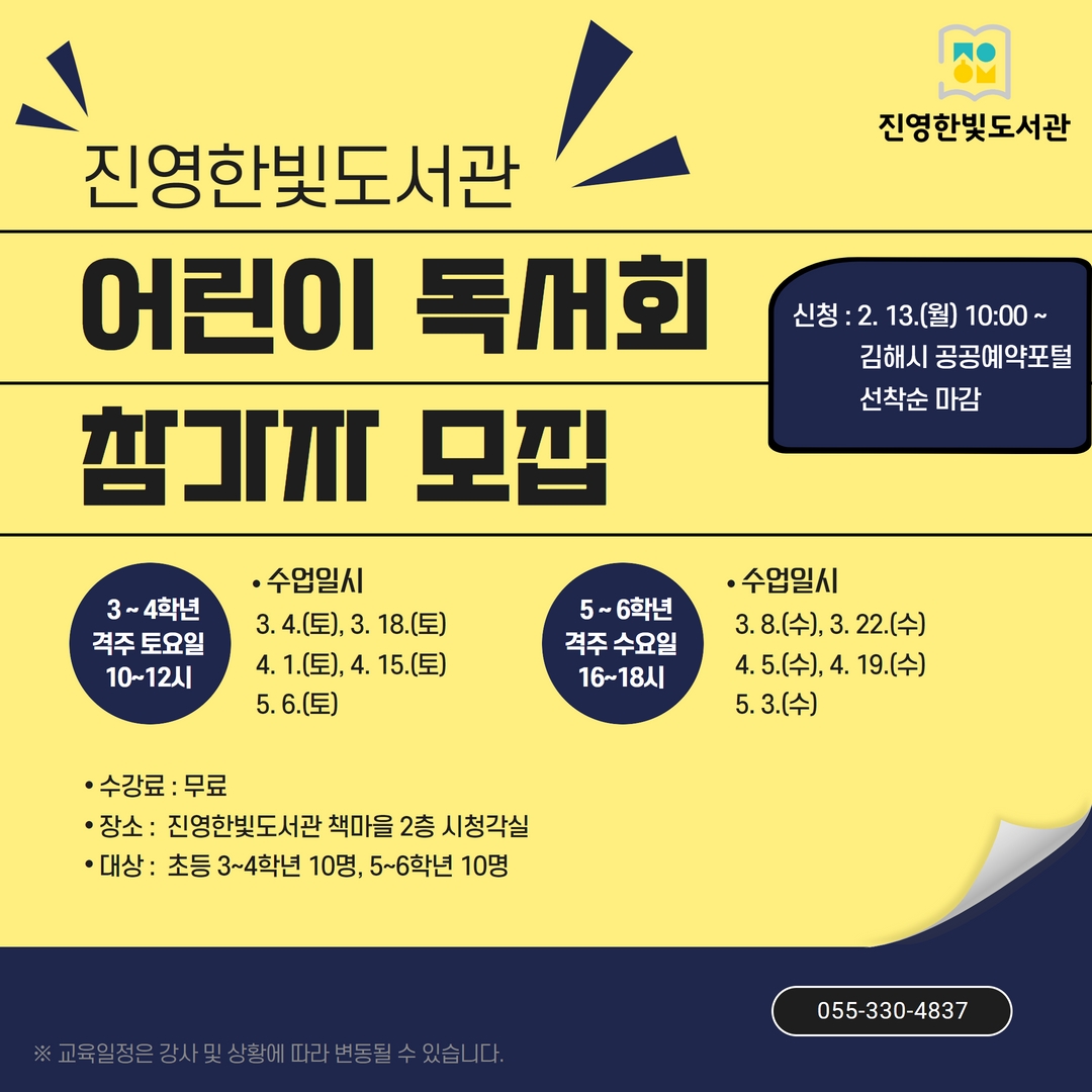 진영한빛도서관 2023년 어린이 독서회(3~4학년반)