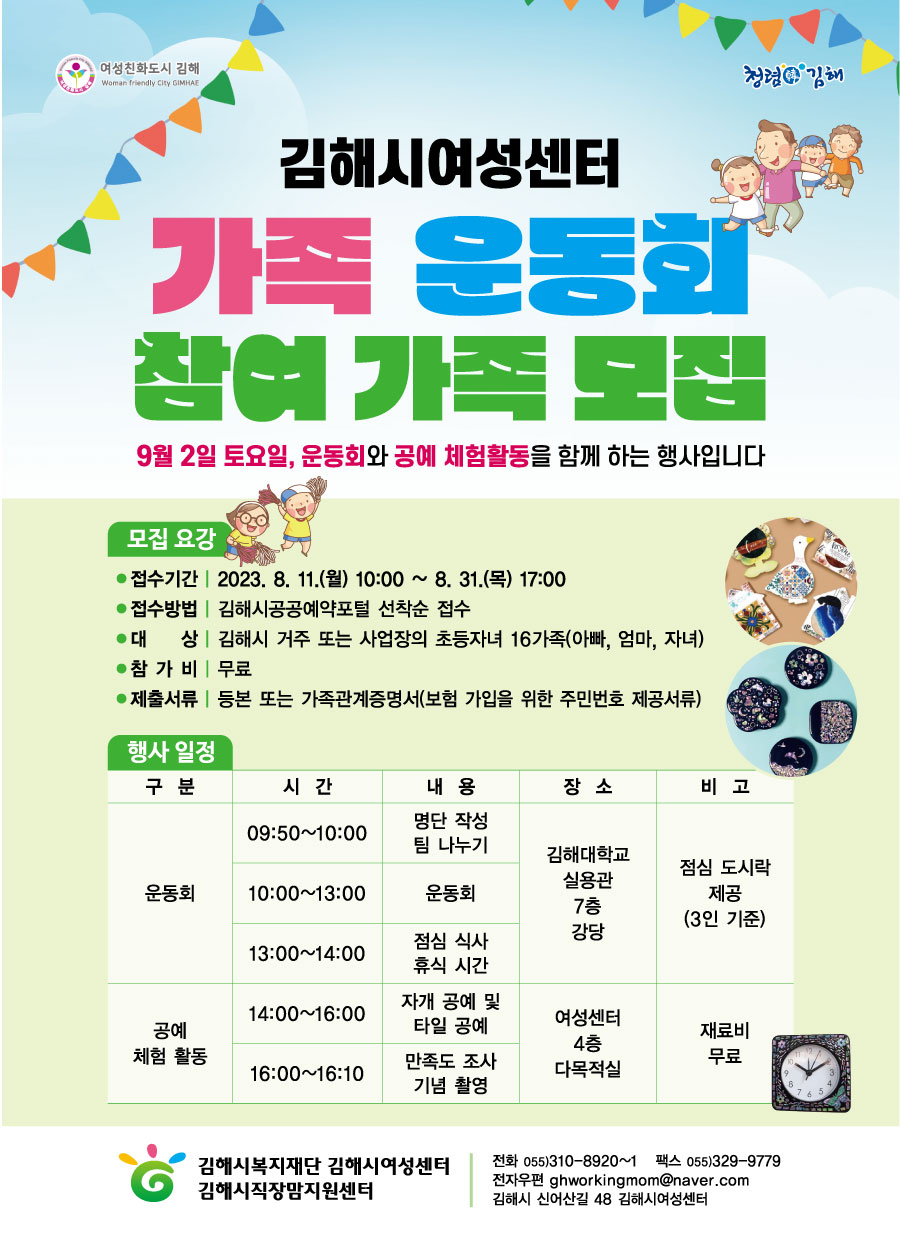 * 대상 : 김해시 거주하거나 사업장에 다니는 초등자녀 가족 16팀