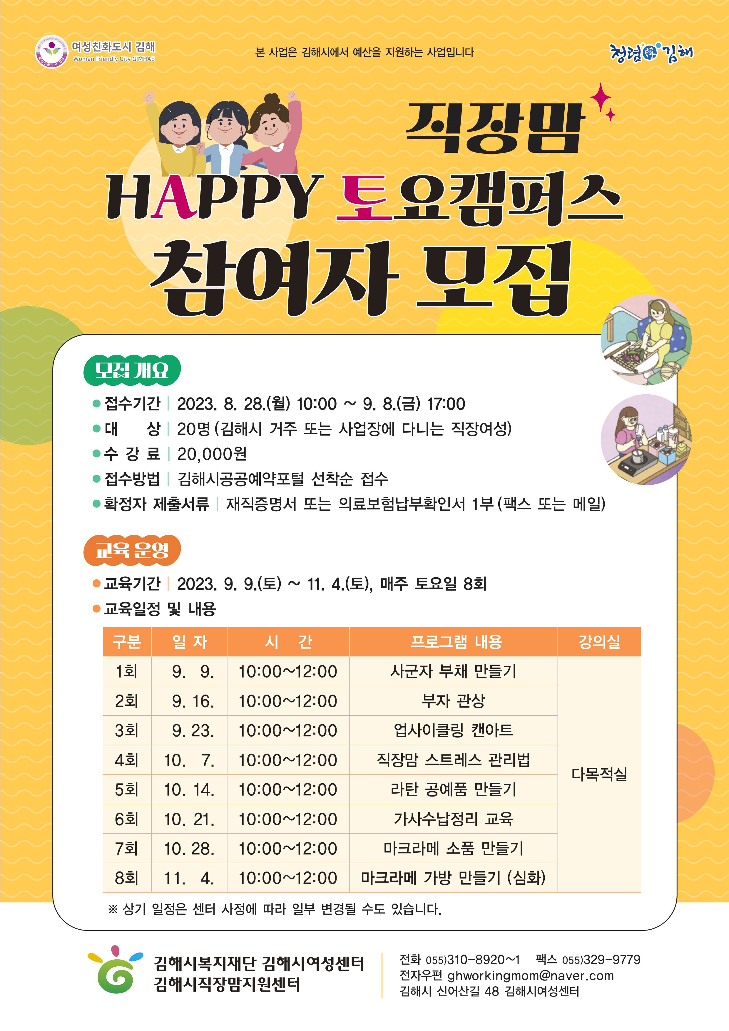 여성센터 여성센터 직장맘 『HAPPY 토요캠퍼스』 참여자 모집
