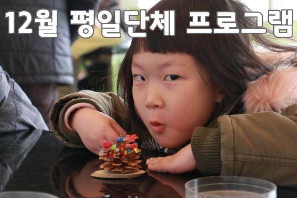 12월 5일(수) ~ 14일(금)시간 : 오전 10:30 ~ 오후 12:00대상 : 어린이집, 유치원, 초등학교 단체(유아 및 어린이)정원 : 각 45명입장료 : 무료