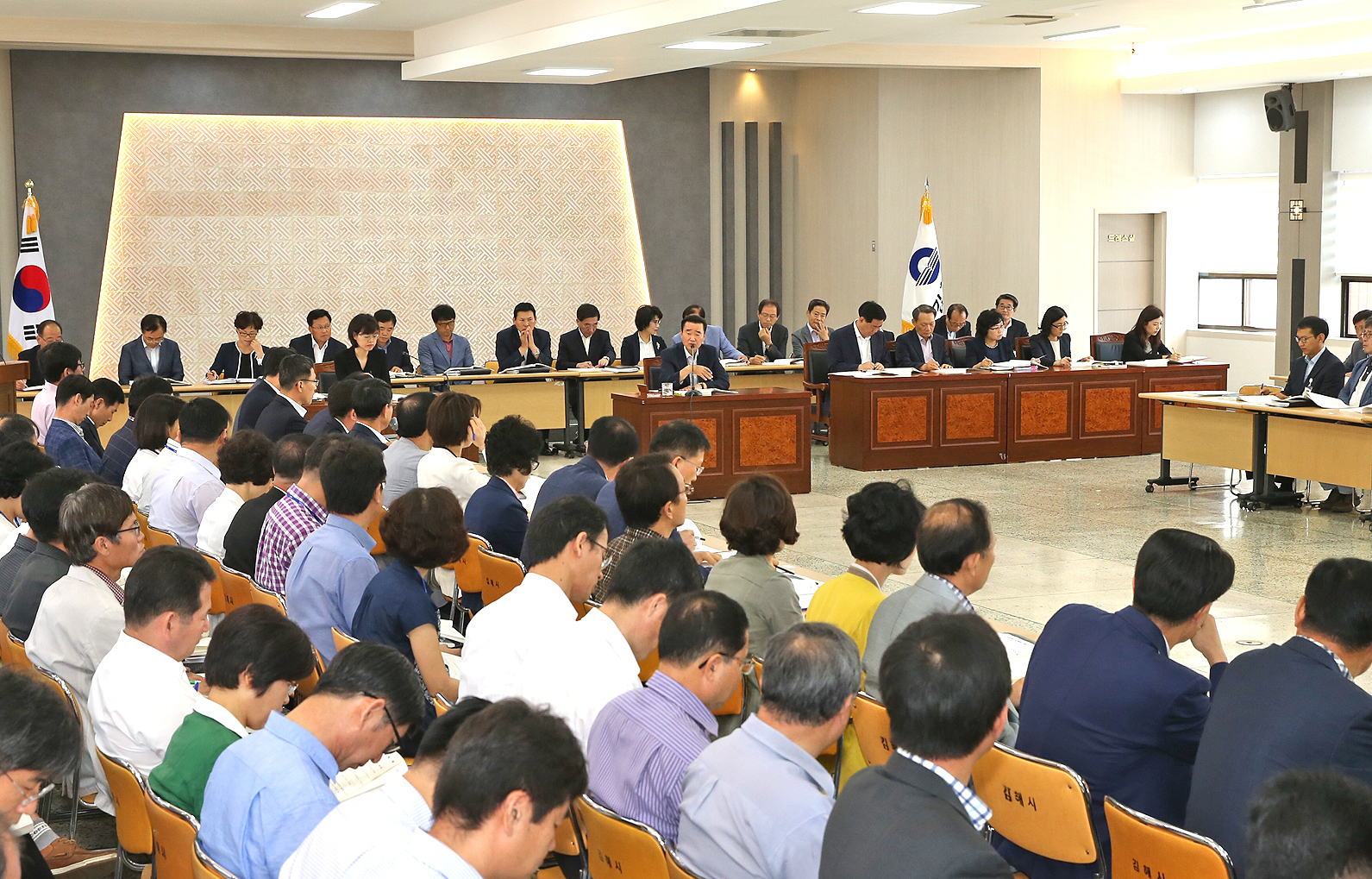 김해시가 지난 10월 5일 간부회의서 3일 장유 무계동 아파트 공사 현장에서 발생한 승강기 추락사고와 관련해 '재해예방 종합대책'을 수립하는 등 아파트 건설 현장 안전사고 예방 대책 마련에 총력을 기울이기로 했다.