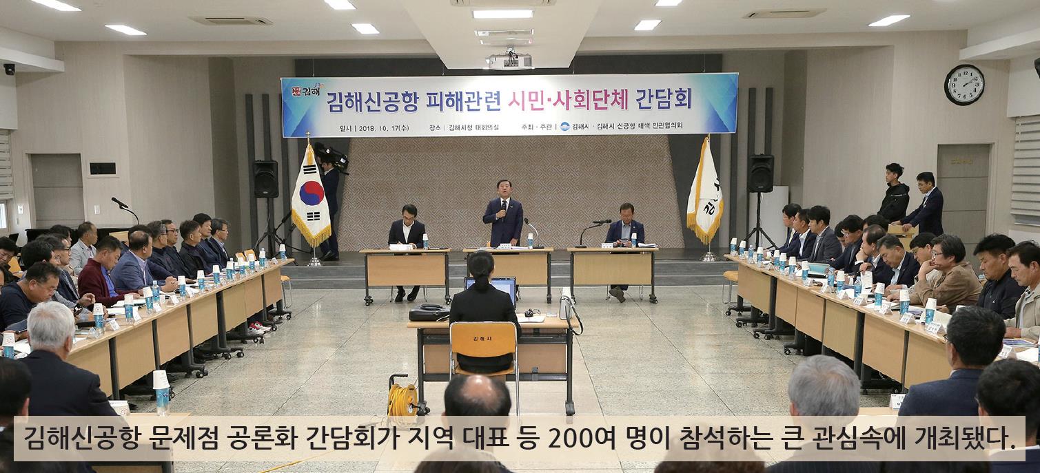 '김해신공항의 문제점 공론화를 위한 시민ㆍ사회단체 대표 간담회'가 지난 10월 17일 피해 예상지역 통장단장, 주민자치위원장, 시민단체 대표 등 200여 명이 참석하는 큰 관심 속에 개최됐다.