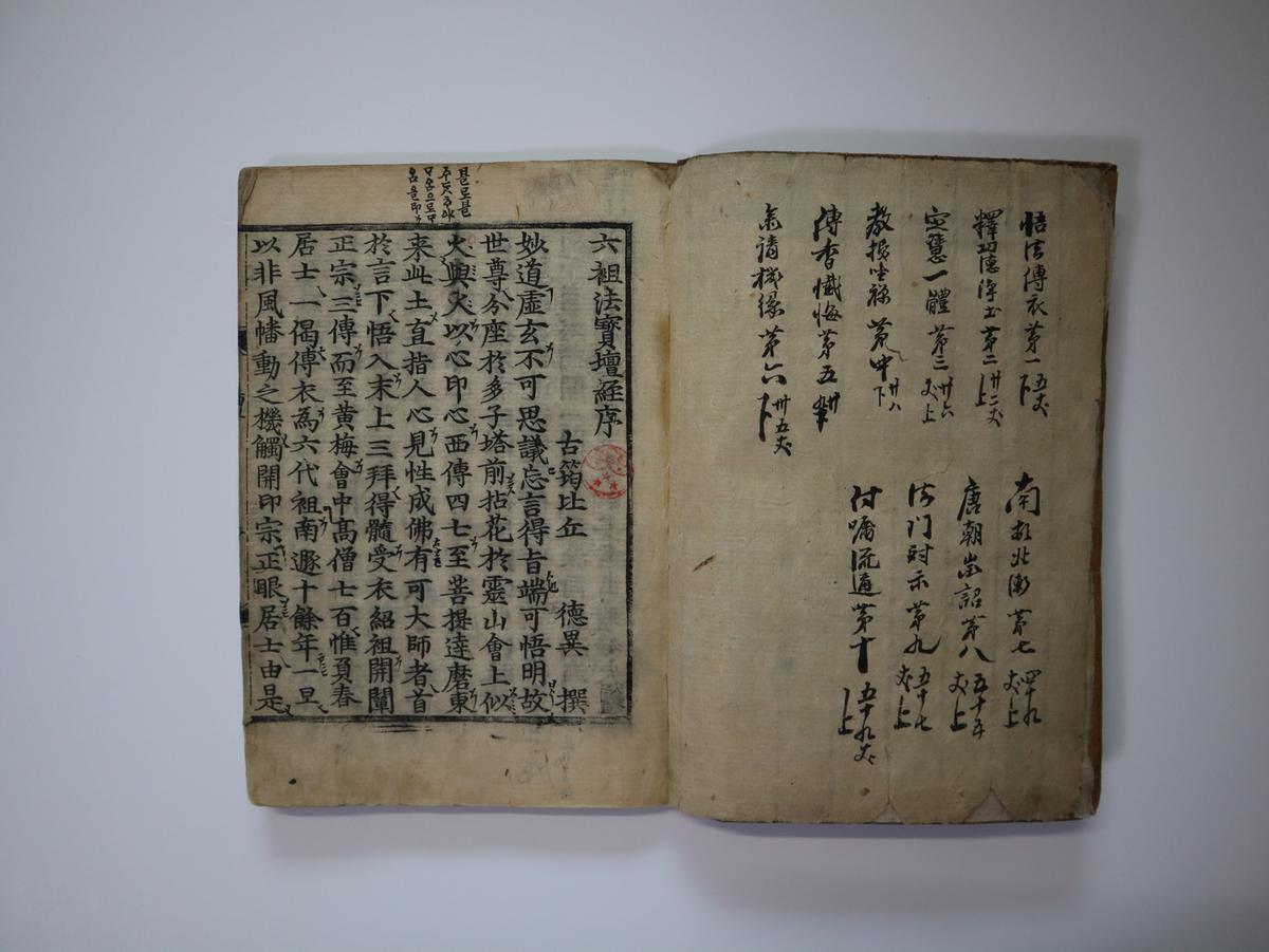 김해 여여정사 육조대사법보단경은 1479년 백운암 병풍암에서 간행된 불경으로 동아시아 선불교에 가장 많은 영향을 끼친 선종의 지침서이자 우리나라 조계종의 종전(宗典)으로 여겨진다.