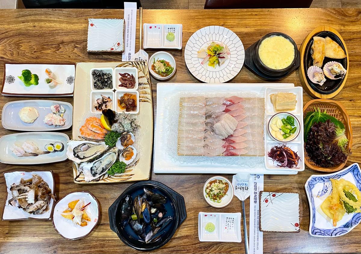 200평 규모, 단체석/개별룸 완비, 대형주차장 준비완료! 매일 산지직송의 싱싱한 바다의 향으로 기본 회 한상에 해산물까지 따라나오는 가성비맛집!