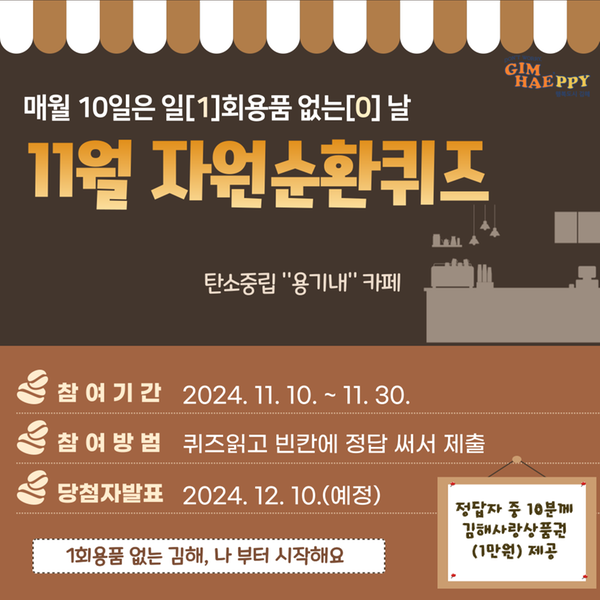 『매월 10일, 1회용품 없는 날』 11월 이벤트 자원순환 퀴즈