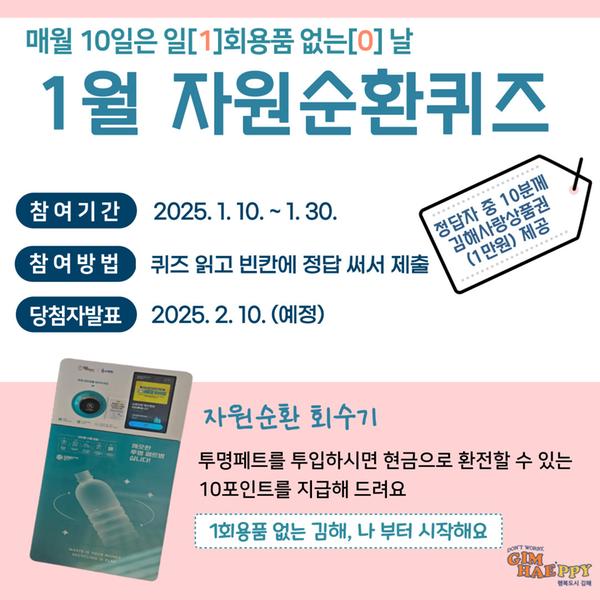 『매월 10일, 1회용품 없는 날』 1월 이벤트 자원순환 퀴즈