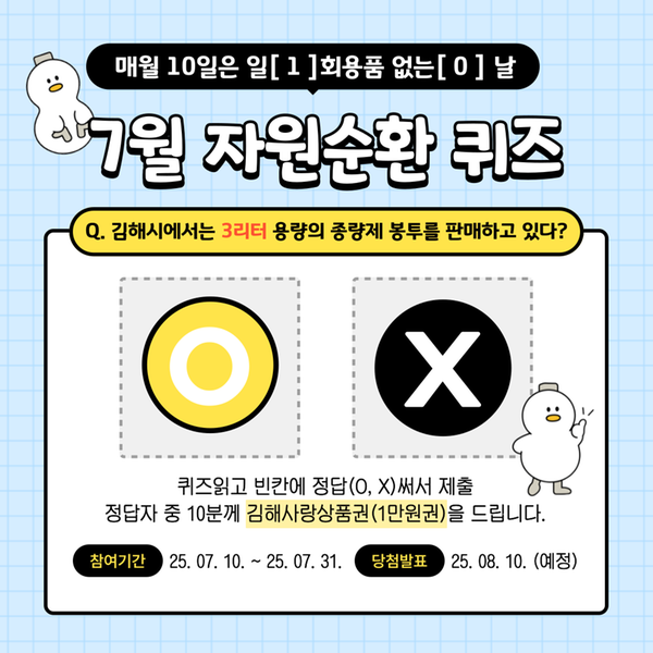 『매월 10일, 1회용품 없는 날』 7월 이벤트 자원순환 퀴즈