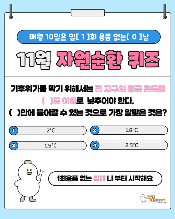 『매월 10일, 1회용품 없는 날』 11월 이벤트 자원순환 퀴즈