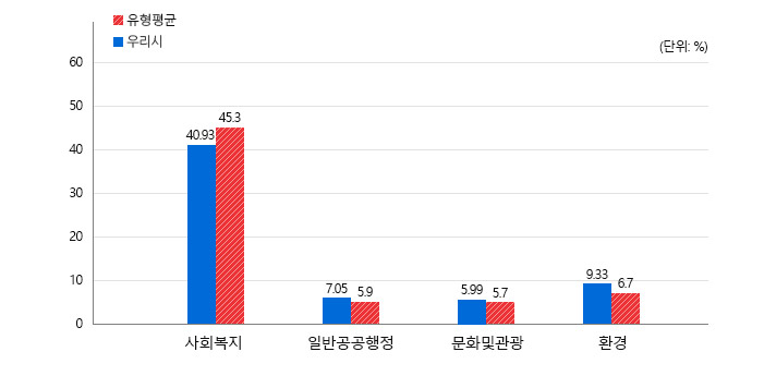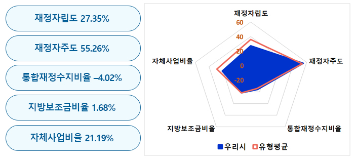 우리 시를 유형 지방자치단체의 평균과 살림살이를 비교하여 보면 다음과 같습니다.