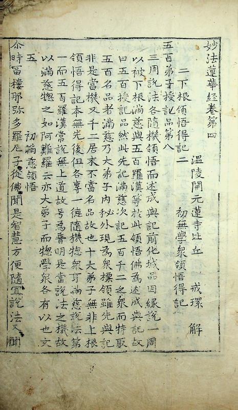 김해 해성사 묘법연화경 권4∼7은 1399년 남재(南在)가 쓴 발문에 의하면 해린(海隣)이 정천익과 이양 등의 시주와 도움을 받아 만 1년간 작업하여 간행되었다. 이 책은 부처가 되는 길이 누구에게나 열려 있다는 것을 중심 사상 으로 하는 경전으로, 우리나라 불교 사상 확립에 크게 영향을 끼쳤다.