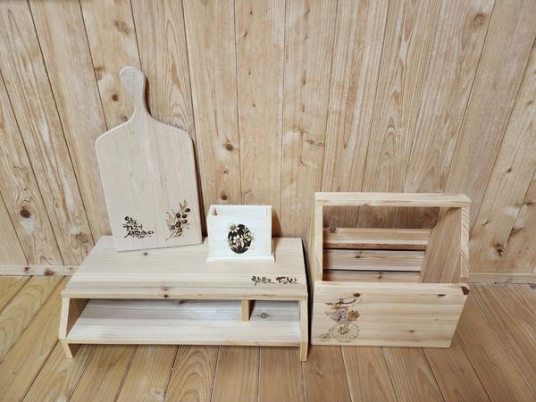 *품목 - 편백나무 도마, 소나무 연필꽂이, 잡지꽂이, 모니터받침대