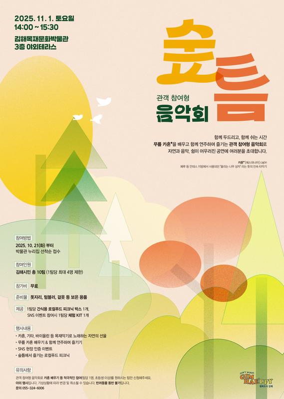 [김해목재문화박물관 홈페이지]→[체험.교육]→[박물관 교육]→[2025 GWCM 숲틈음악회]