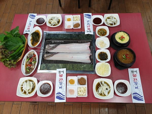 힘이불끈장어는 국내산 바다장어를 주문 후 바로잡아 숯불에 구워 정성껏 볶은 국내산 천일염에 찍어 드시는 소금구이와 약성이 우수한 구찌뽕, 오가피, 헛개, 감초 등의 약제를 넣어 끓인 간장에 고춧가루, 조청, 마늘로 숙성한 매콤한 양념을 발라 그릴에 구운 양념구이가 있습니다. 소금구이는 맛있게 매콤한 양념에 생강채와 방아채를 넣고 비벼 싱싱한 채소와 쌈으로 드시면 그 맛이 또 일품입니다.