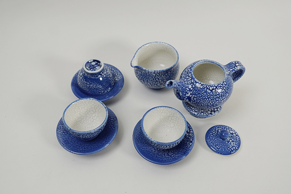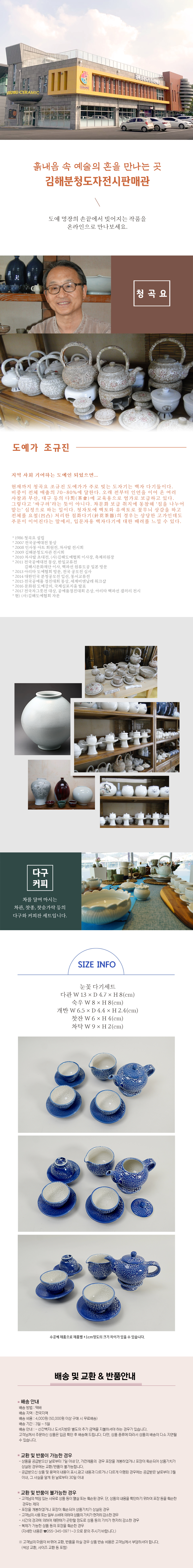 다관(13x4.7x8cm),숙우(8x8cm),개반(6.5x4.4x2.4cm),찻잔(6x4cm),차탁(9x2cm)
