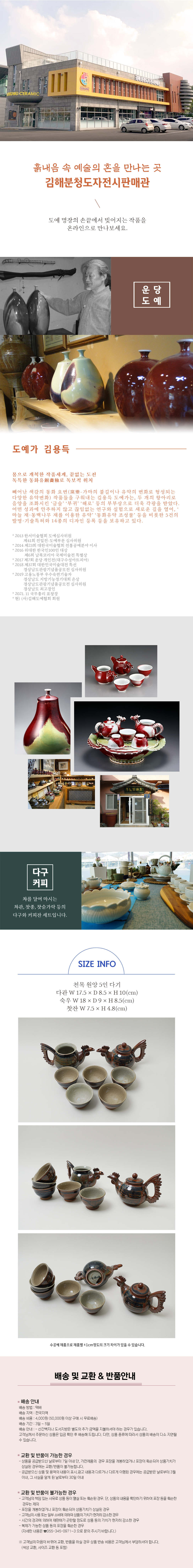 다관(17.5x8.5x10cm),숙우(18x9x8.5cm),찻잔(7.5x4.8cm)