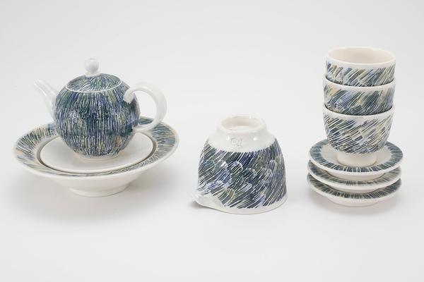 찻잔 6 x 6 x 5.5cm 받침 8 x 8 x 1.5cm 숙우 9 x 7.5 x 6.5cm
