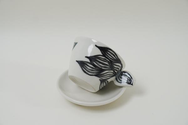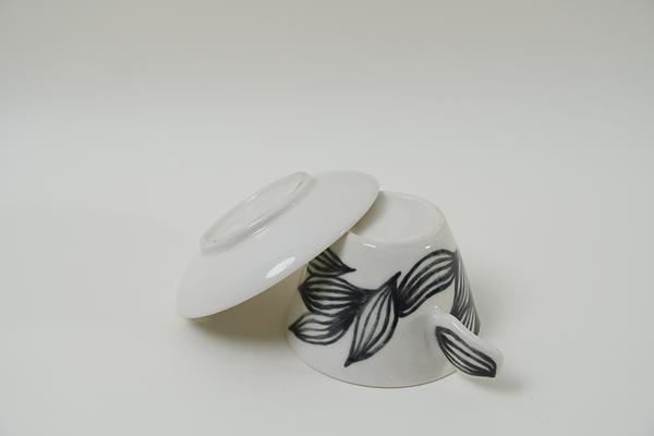 잔: 10.5cmx5.2cmx7.7cmx4.5cm, 받침: 10cmx1.5cm
