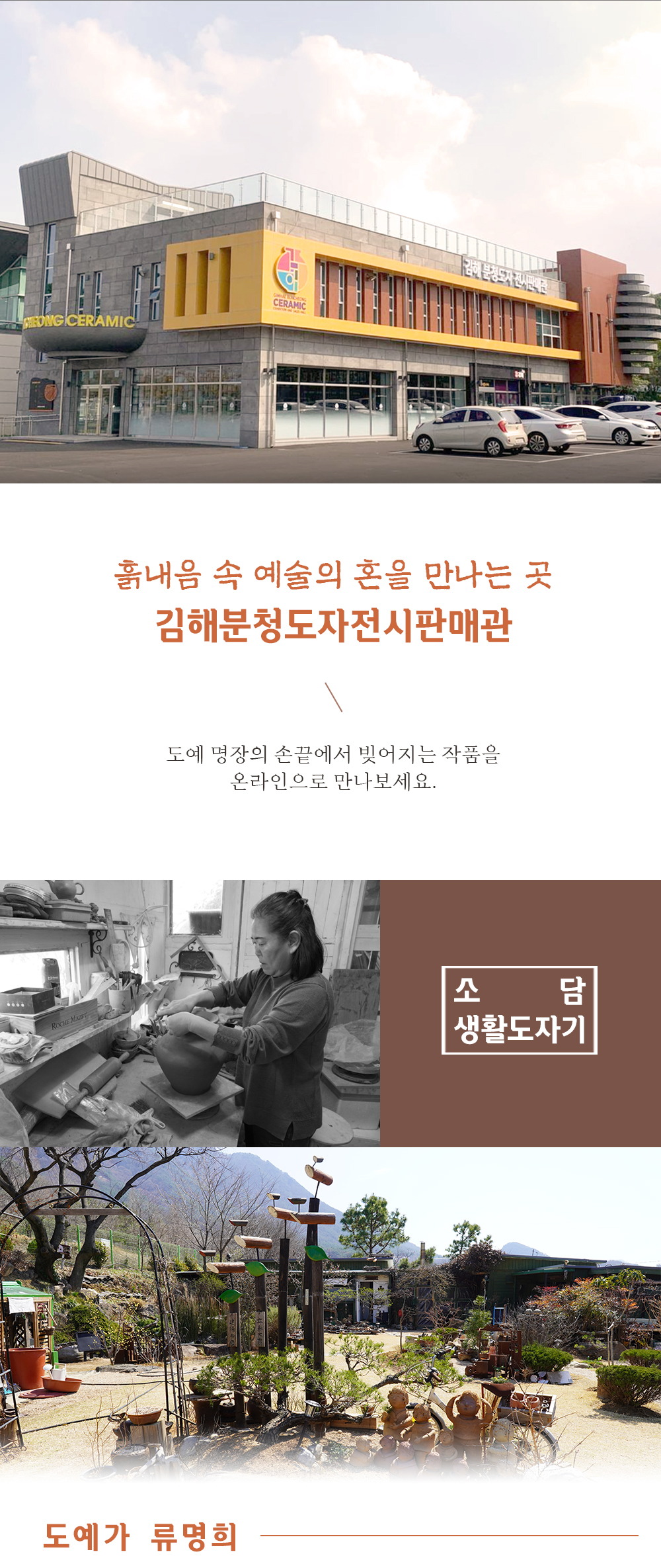 생림면 무척산 전망의 전원풍경을 배경으로 한 갤러리 shop으로 운영 주로 차도구, 수반, 야생화화분, 접시, 인형외