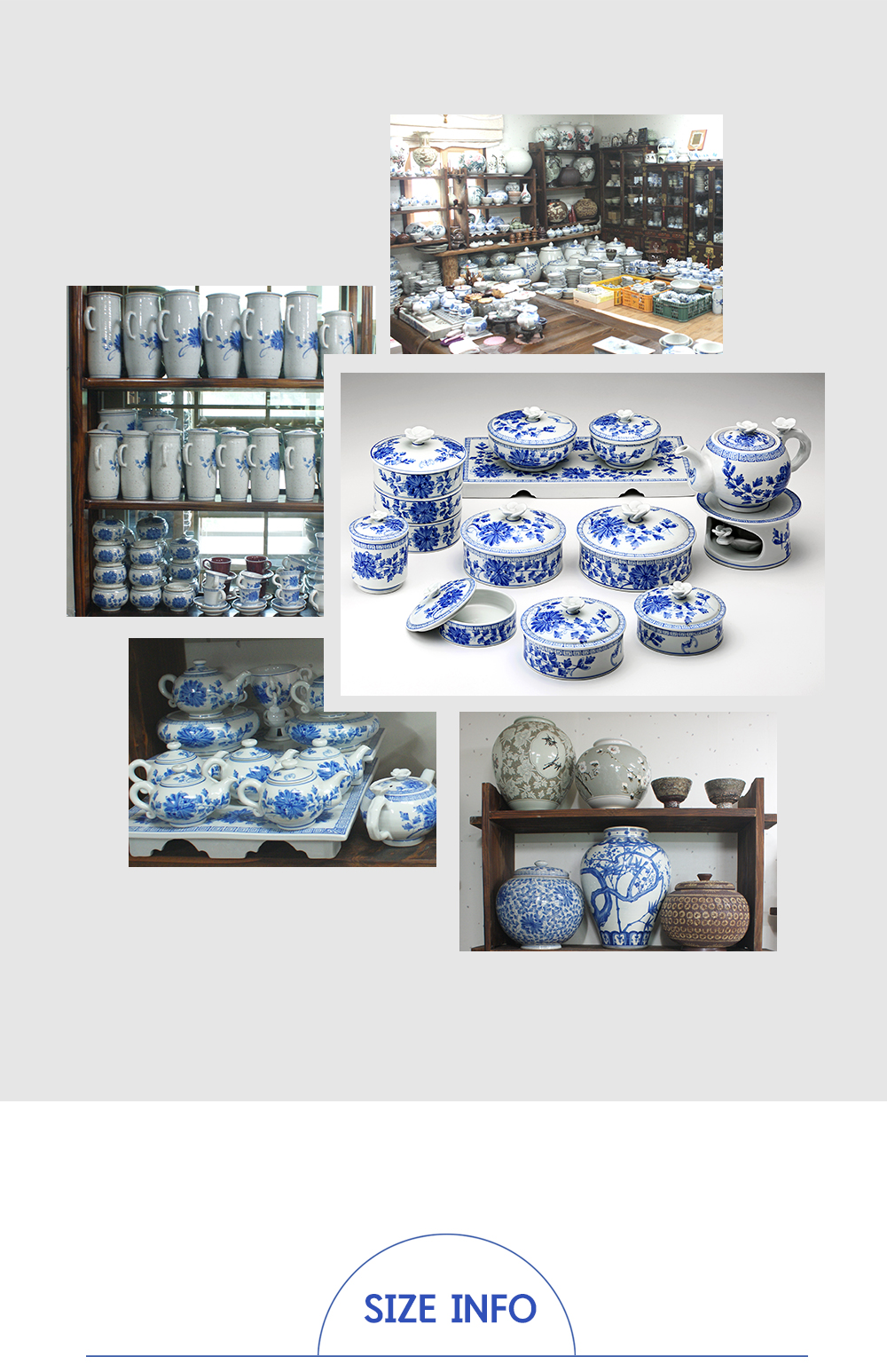 모든 종류의 식기는 물론 작설차 다기, 홍차 다구 세트까지 같은 문양으로 갖출 수 있다.
