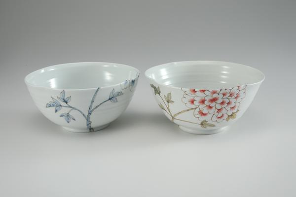 파스텔톤의 가벼운 터치로 그려진 자그마한 야생화들이 순백의 차가운 백자에 온기를 불어넣어,