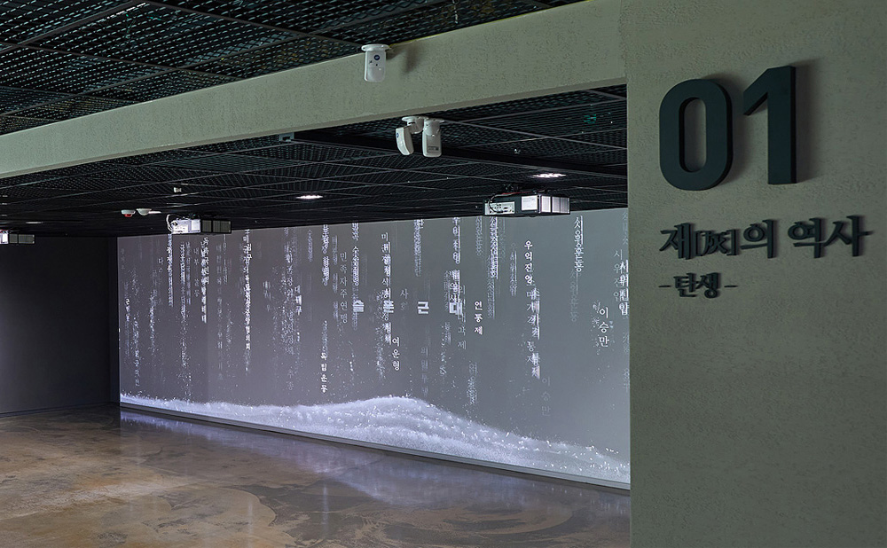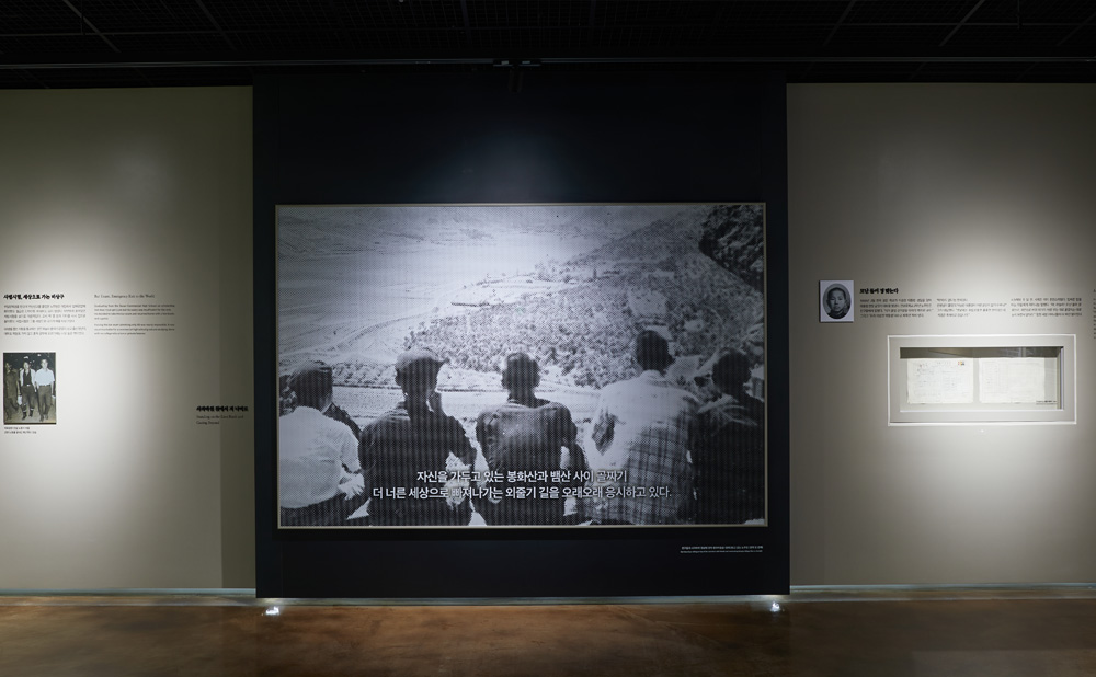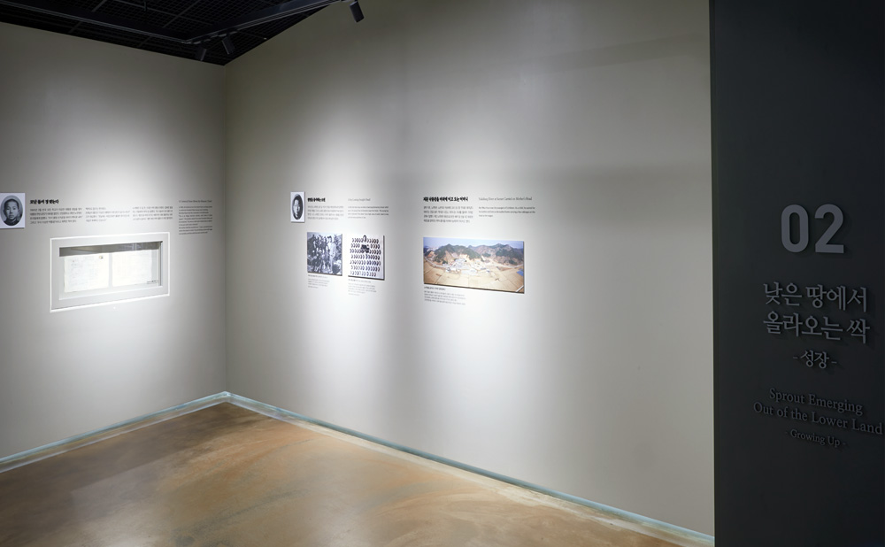 노무현 서사의 시작을 알리는 공간입니다. 구한말부터 일제강점기를 거쳐 광복, 대한민국 정부수립에 이르기까지 노무현 대통령 출생 전후 혼란스러웠던 민족의 역사를 미디어아트를 통해 상징적으로 표현했습니다.