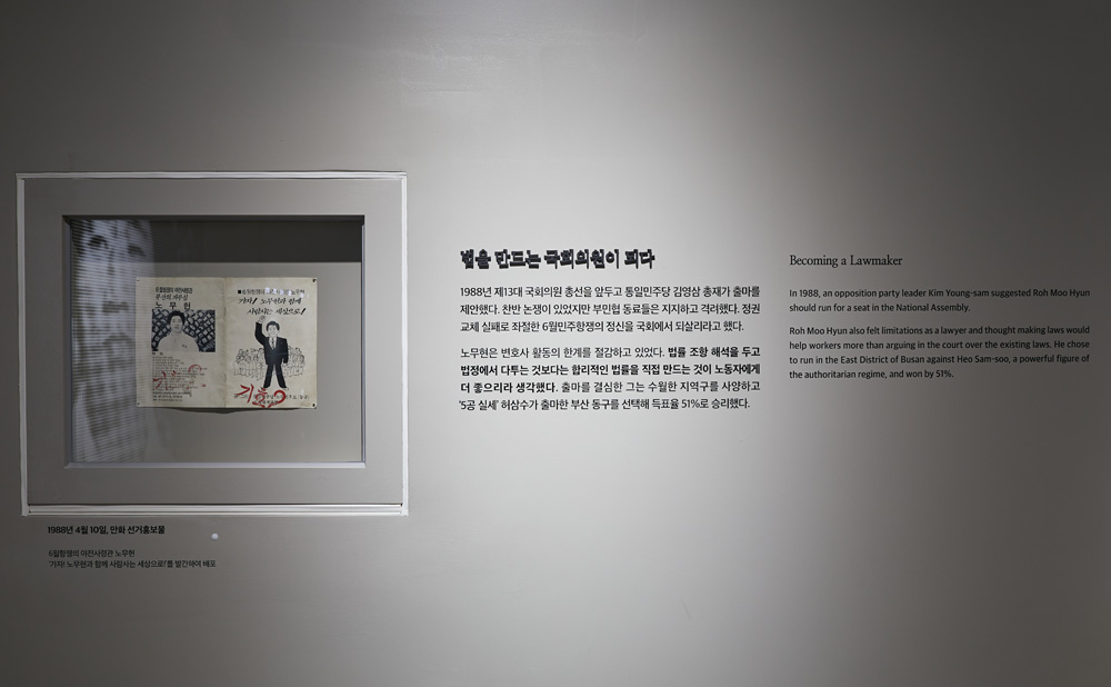 부림사건 변론을 계기로 인권변호사로 거듭난, 그리고 약자의 편에 서서 법을 만들기 위해 정치에 입문한 부산의 야전사령관 노무현을 만나볼 수 있는 공간입니다.