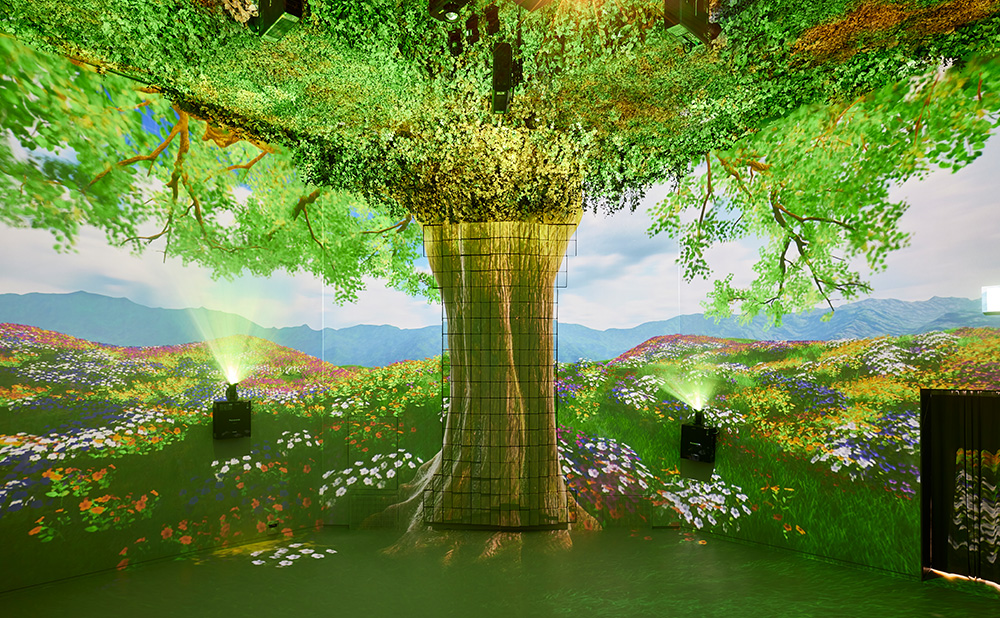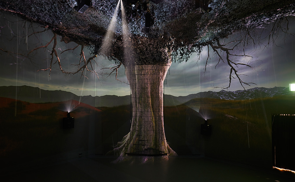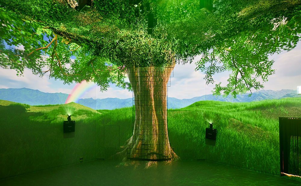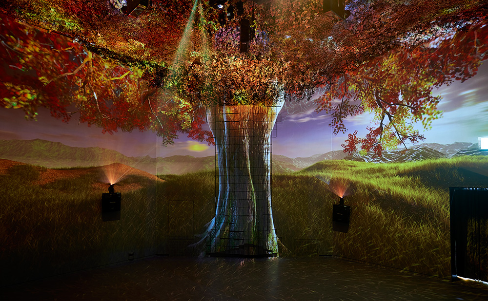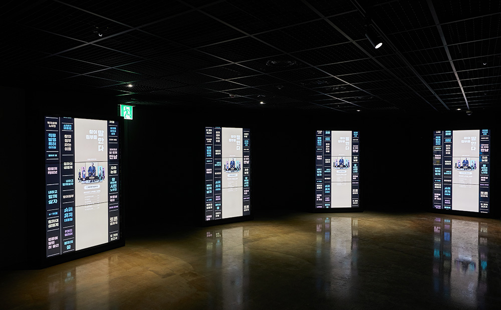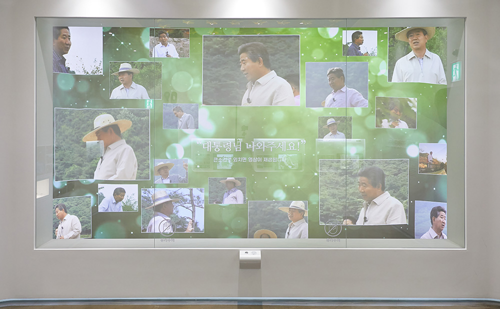 노무현 대통령의 당선을 우람한 민주주의의 나무로 표현했습니다. 벽면과 천장, 바닥까지 6면을 활용한 미디어아트로 대통령 당선의 극적인 순간을 그려냅니다.