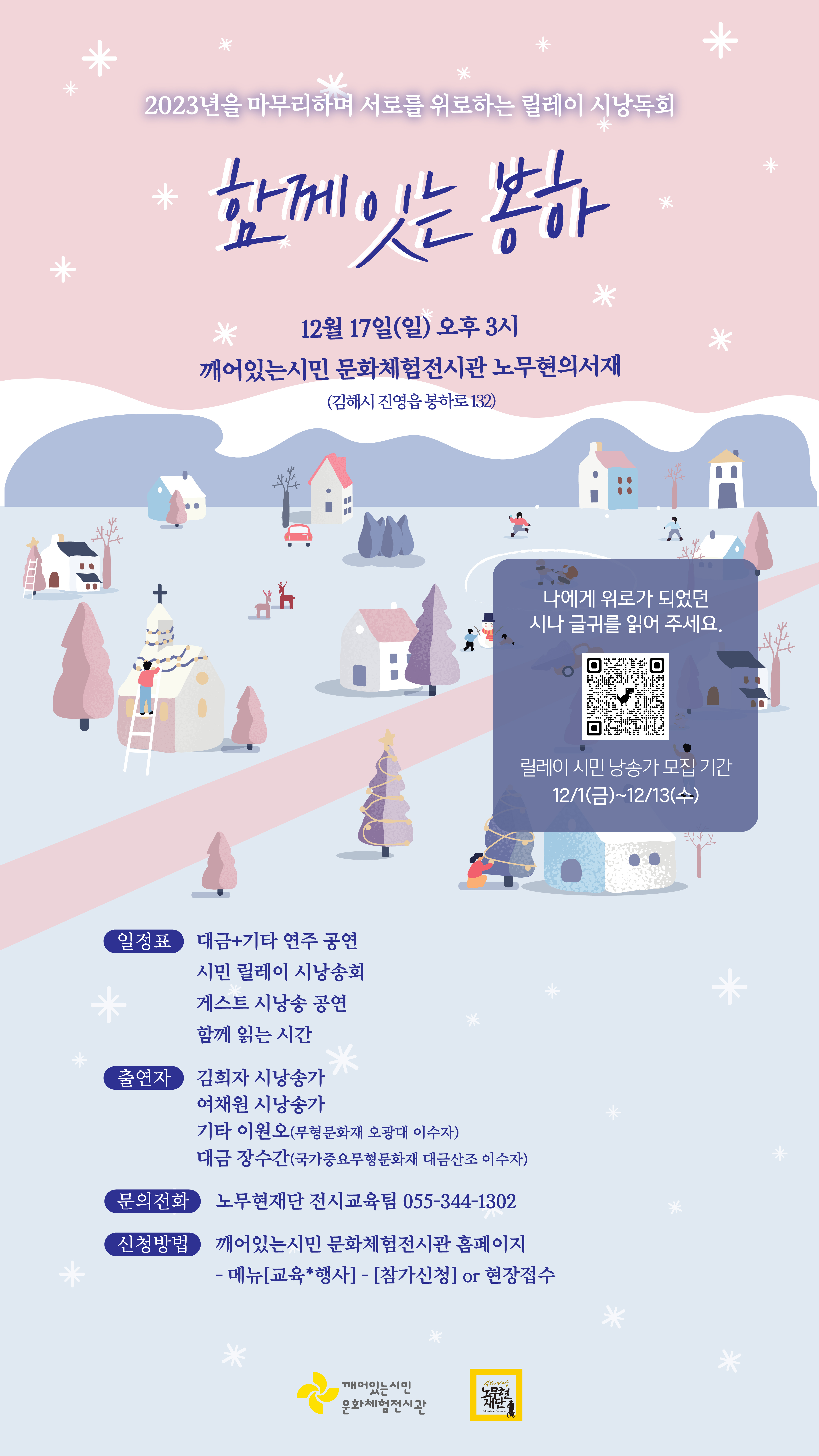 한 해를 마무리하며 서로를 위로하는 시간을 가지기 위한 시민 릴레이 시낭송회 '함께 잇는 봉하'입니다.