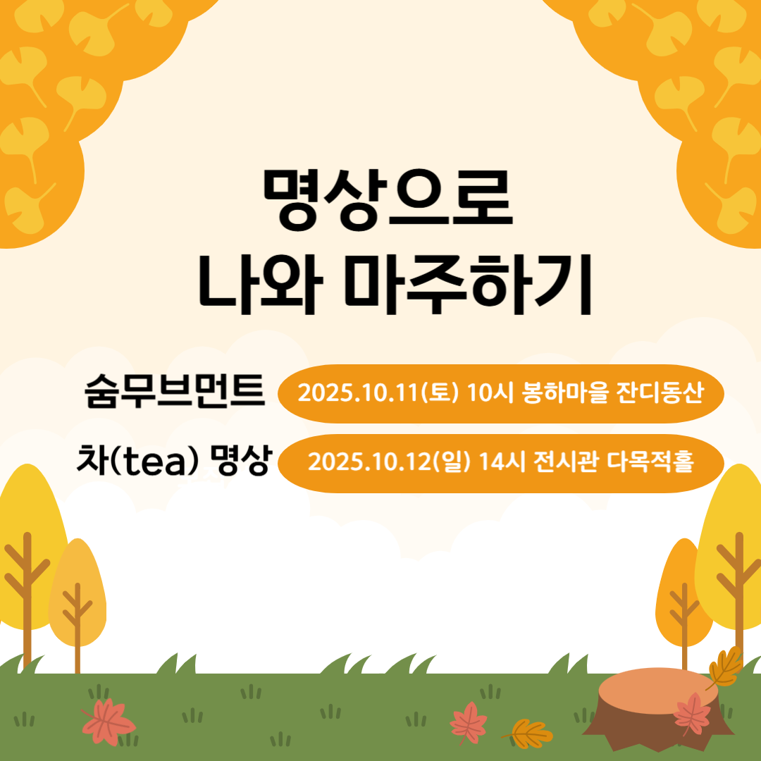 - 10/12(일) 14:00~15:30 차(茶) 명상