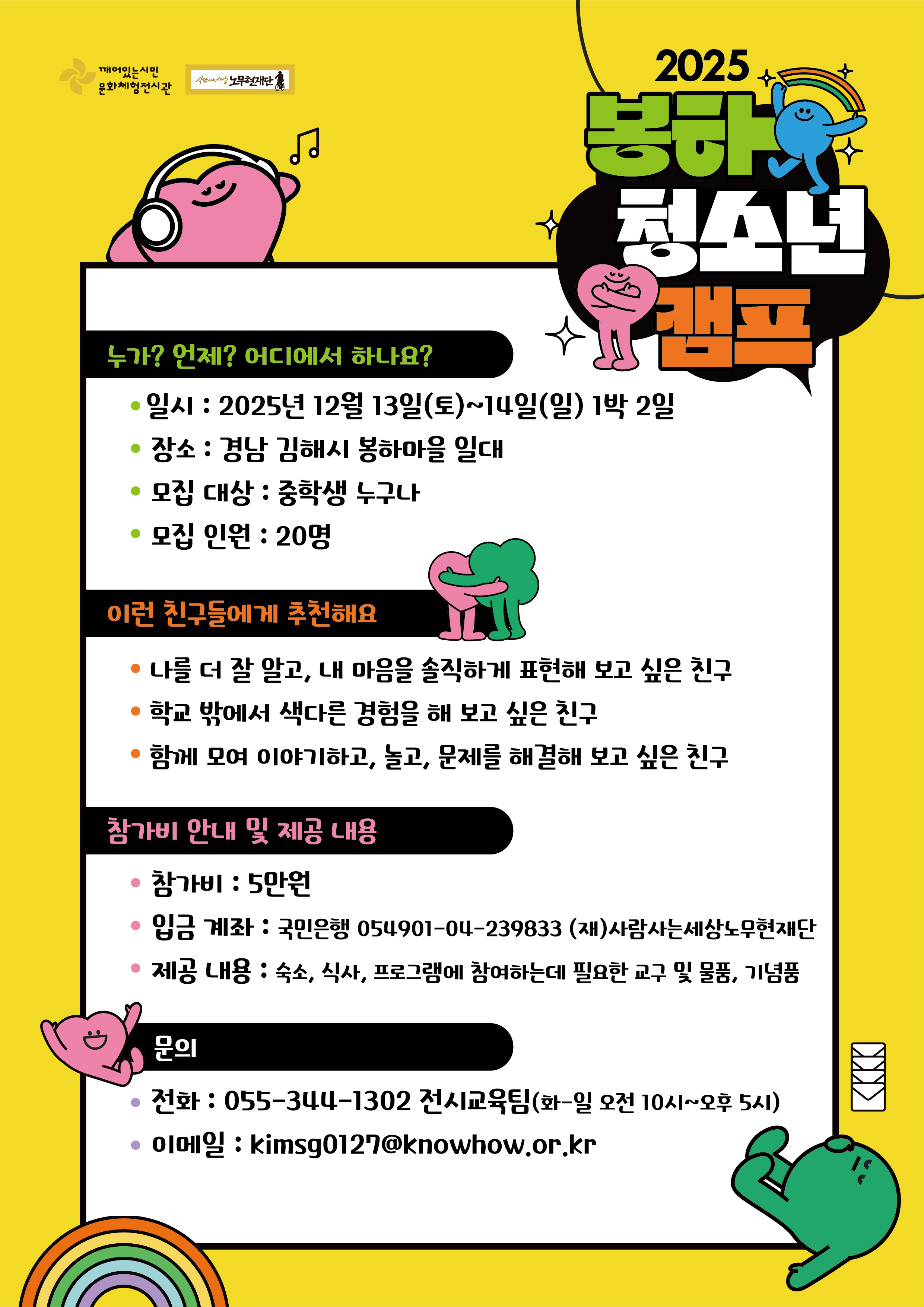 - 캠프 중 촬영되는 사진·영상은 재단 및 봉하마을의 홍보·기록용으로 활용될 수 있습니다.