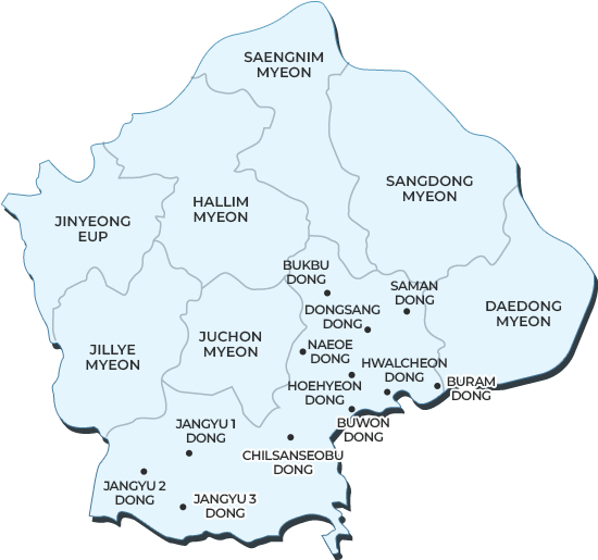 Jangyu-dong, Eungdal-dong, Suga-dong, Gwandong-dong, Yulha-dong |