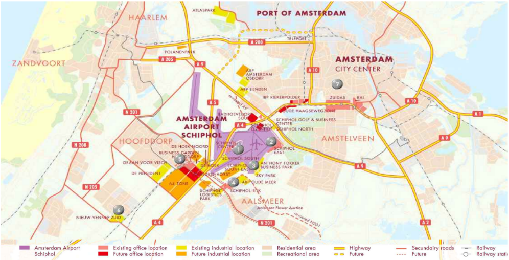 - 암스테르담 시와 할레머메어 지방정부는 공항에서 암스테르담 중심부까지 연결하는 공항회랑을 지정