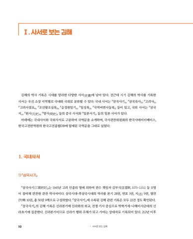 %u2160. %uc0ac%uc11c%ub85c %ubcf4%ub294 %uae40%ud574%uae40%ud574%uc758 %uc5ed%uc0ac %uae30%ub85d%uc740 %uc2dc%ub300%ub97c %ub9dd%ub77c%ud55c %ub2e4%uc591%ud55c %uc0ac%uc11c(%u53f2%u66f8)%uc5d0 %ub0a8%uc544 %uc788%ub2e4. %uc804%uadfc%ub300 %uc2dc%uae30 %uae40%ud574%uc758 %uc5ed%uc0ac%ub97c %uae30%ub85d%ud55c %uc0ac%uc11c%ub294 %uc6b0%uc120 %uc18c%uc7a5 %uc9c0%uc5ed%ubcc4%ub85c %uad6d%ub0b4%uc640 %uad6d%uc678%ub85c %ubd84%ub958%ud560 %uc218 %uc788%ub2e4. %uad6d%ub0b4 %uc0ac%uc11c%ub294 %u300e%uc0bc%uad6d%uc0ac%uae30%u300f, %u300e%uc0bc%uad6d%uc720%uc0ac%u300f, %u300e%uace0%ub824%uc0ac%u300f, %u300e%uace0%ub824%uc0ac%uc808%uc694%u300f, %u300e%uc870%uc120%uc655%uc870%uc2e4%ub85d%u300f, %u300e%uc2b9%uc815%uc6d0%uc77c%uae30%u300f, %u300e%uc77c%uc131%ub85d%u300f, %u300e%uad6d%uc5ed%ube44%ubcc0%uc0ac%ub4f1%ub85d%u300f %ub4f1%uc774 %uc788%uace0, %uad6d%uc678 %uc0ac%uc11c%ub294 %u300e%uc0bc%uad6d%uc9c0%u300f, %u300e%uc6d0%uc0ac(%u5143%u53f2)%u300f, %u300e%uba85%uc0ac(%u660e%u53f2)%u300f %ub4f1%uc758 %uc911%uad6d %uc0ac%uc11c%uc640 %u300e%uc77c%ubcf8%uc11c%uae30%u300f %ub4f1%uc758 %uc77c%ubcf8 %uc0ac%uc11c%uac00 %uc788%ub2e4. %uc544%ub798%uc5d0%ub294 %uad6d%ub0b4%uc0ac%uc11c%uc640 %uad6d%uc678%uc0ac%uc11c%ub85c %uad6c%ubd84%ud558%uc5ec %uad6d%uc5ed%ubb38%uc744 %uc18c%uac1c%ud558%uba70, %uad6d%uc0ac%ud3b8%ucc2c%uc704%uc6d0%ud68c%uc758 %ud55c%uad6d%uc0ac%ub370%uc774%ud130%ubca0%uc774%uc2a4, %ud55c%uad6d%uace0%uc804%ubc88%uc5ed%uc6d0%uc758 %ud55c%uad6d%uace0%uc804%uc885%ud569DB%uc5d0 %ud0d1%uc7ac%ub41c %uad6d%uc5ed%ubb38%uc744 %uadf8%ub300%ub85c %uc2e4%uc5c8%ub2e4. 1. %uad6d%ub0b4%uc0ac%uc11c1) %u300e%uc0bc%uad6d%uc0ac%uae30%u300f%u300e%uc0bc%uad6d%uc0ac%uae30(%u4e09%u570b%u53f2%u8a18)%u300f%ub294 1145%ub144 %uace0%ub824 %uc778%uc885%uc758 %uba85%uc5d0 %uc758%ud558%uc5ec %ud3b8%uc218 %ucc45%uc784%uc790 %uae40%ubd80%uc2dd(%u91d1%u5bcc%u8efe, 1075~1151) %ub4f1 11%uba85%uc774 %ucc38%uc5ec%ud574 %ud3b8%ucc2c%ud55c %uad00%ucc2c %uc5ed%uc0ac%uc11c%uc774%ub2e4. %uc0bc%uad6d%uc2dc%ub300~%ud6c4%uc0bc%uad6d%uc2dc%ub300%uc758 %uc5ed%uc0ac%ub97c %ubcf8%uae30 28%uad8c, %uc5f0%ud45c 3%uad8c, %uc9c0(%u5fd7) 9%uad8c, %uc5f4%uc804(%u5217%u50b3) 10%uad8c, %ucd1d 50%uad8c 9%ucc45%uc73c%ub85c %uad6c%uc131%ud558%uc600%ub2e4. %u300e%uc0bc%uad6d%uc0ac%uae30%u300f%uc5d0 %uc218%ub85d%ub41c %uae40%ud574 %uad00%ub828 %uae30%ub85d%uc740 %ubaa8%ub450 22%uac74 %uc815%ub3c4 %ud655%uc778%ub41c%ub2e4.%u300e%uc0bc%uad6d%uc0ac%uae30%u300f%uc758 %uae40%ud574 %uae30%ub85d%uc740 %uc2e0%ub77c%ubcf8%uae30%uc5d0 %uc2e0%ub77c%uc640%uc758 %uc678%uad50, %uc804%uc7c1 %uae30%uc0ac %uc911%uc2ec%uc73c%ub85c %ubc15%ud601%uac70%uc138~%ub098%ud574%uc774%uc0ac%uae08%ub300%uc758 %uc2e0%ub77c%ucd08%uae30%uc5d0 %uc9d1%uc911%ud55c%ub2e4. %uc2e0%ub77c%ubcf8%uae30%uc774%ubbc0%ub85c %uc2e0%ub77c%uac00 %ud589%uc704 %uc8fc%uccb4%uac00 %ub418%uace0 %uac00%uc57c%ub294 %uc0c1%ub300%uc790%ub85c %uae30%ub85d%ub418%uc5b4 %uc788%ub2e4. 212%ub144 %uc774%ud6c410 %u2160. %uc0ac%uc11c%ub85c %ubcf4%ub294 %uae40%ud574