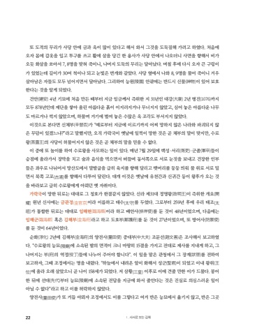 %ub610 %ub3c4%uc801%uc758 %ubb34%ub9ac%uac00 %uc0ac%ub2f9 %uc548%uc5d0 %uae08%uacfc %uc625%uc774 %ub9ce%uc774 %uc788%ub2e4%uace0 %ud574%uc11c %uc640%uc11c %uadf8%uac83%uc744 %ub3c4%ub451%uc9c8%ud574 %uac00%ub824%uace0 %ud558%uc600%ub2e4. %ucc98%uc74c%uc5d0 %uc624%uc790 %ubab8%uc5d0 %uac11%uc637%uc744 %uc785%uace0 %ud22c%uad6c%ub97c %uc4f0%uace0 %ud65c%uc5d0 %uc0b4%uc744 %ub2f9%uae34 %ud55c %uc6a9%uc0ac%uac00 %uc0ac%ub2f9 %uc548%uc5d0%uc11c %ub098%uc624%ub354%ub2c8 %uc0ac%uba74%uc744 %ud5a5%ud574%uc11c %ube44%uac00 %uc624%ub4ef %ud654%uc0b4%uc744 %uc3d8%uc544%uc11c 7, 8%uba85%uc744 %ub9de%ud600 %uc8fd%uc774%ub2c8, %ub098%uba38%uc9c0 %ub3c4%ub451%uc758 %ubb34%ub9ac%ub294 %ub2ec%uc544%ub0ac%ub2e4. %uba70%uce60 %ud6c4%uc5d0 %ub2e4%uc2dc %uc624%uc790 %ud070 %uad6c%ub801%uc774%uac00 %uc788%uc5c8%ub294%ub370 %uae38%uc774%uac00 30%uc5ec %ucc99%uc774%ub098 %ub418%uace0 %ub208%ube5b%uc740 %ubc88%uac1c%uc640 %uac19%uc558%ub2e4. %uc0ac%ub2f9 %uc606%uc5d0%uc11c %ub098%uc640 8, 9%uba85%uc744 %ubb3c%uc5b4 %uc8fd%uc774%ub2c8 %uaca8%uc6b0 %uc0b4%uc544%ub0a8%uc740 %uc790%ub4e4%ub3c4 %ubaa8%ub450 %ub118%uc5b4%uc9c0%uba74%uc11c %ub2ec%uc544%ub0ac%ub2e4. %uadf8%ub9ac%ud558%uc5ec %ub2a5%uc6d0(%u9675%u5712) %uc548%ud30e%uc5d0%ub294 %ubc18%ub4dc%uc2dc %uc2e0%ubb3c(%u795e%u7269)%uc774 %uc788%uc5b4 %ubcf4%ud638%ud55c%ub2e4%ub294 %uac83%uc744 %uc54c%uac8c %ub418%uc5c8%ub2e4.%uac74%uc548(%u5efa%u5b89) 4%ub144 %uae30%ubb18%uc5d0 %ucc98%uc74c %ub9cc%ub4e0 %ub54c%ubd80%ud130 %uc9c0%uae08 %uc784%uae08%uaed8%uc11c %uc989%uc704%ud55c %uc9c0 31%ub144%uc778 %ub300%uac15(%u5927%u5eb7) 2%ub144 %ubcd1%uc9c4(1076)%uae4c%uc9c0 %ubaa8%ub450 878%ub144%uc778%ub370 %uc81c%ub2e8%uc744 %uc313%uc544 %uc62c%ub9b0 %uc544%ub984%ub2e4%uc6b4 %ud759%uc774 %uc774%uc9c0%ub7ec%uc9c0%uac70%ub098 %ubb34%ub108%uc9c0%uc9c0 %uc54a%uc558%uace0, %uc2ec%uc5b4 %ub193%uc740 %uc544%ub984%ub2e4%uc6b4 %ub098%ubb34%ub3c4 %ub9c8%ub974%uac70%ub098 %uc369%uc9c0 %uc54a%uc558%uc73c%uba70, %ud558%ubb3c%uba70 %uac70%uae30%uc5d0 %ubc8c%uc5ec %ub193%uc740 %uc218%ub9ce%uc740 %uc625 %uc870%uac01%ub3c4 %ubd80%uc11c%uc9c0%uc9c0 %uc54a%uc558%ub2e4.%uc774%uac83%uc73c%ub85c %ubcf8%ub2e4%uba74 %uc2e0%uccb4%ubd80(%u8f9b%u66ff%u5426)%uac00 %u201c%uc608%ub85c%ubd80%ud130 %uc9c0%uae08%uc5d0 %uc774%ub974%uae30%uae4c%uc9c0 %uc5b4%ucc0c %ub9dd%ud558%uc9c0 %uc54a%uc740 %ub098%ub77c%uc640 %ud30c%uad34%ub418%uc9c0 %uc54a%uc740 %ubb34%ub364%uc774 %uc788%uaca0%ub290%ub0d0?%u201d%ub77c%uace0 %ub9d0%ud588%uc9c0%ub9cc, %uc624%uc9c1 %uac00%ub77d%uad6d%uc774 %uc61b%ub0a0%uc5d0 %uc77c%ucc0d%uc774 %ub9dd%ud55c %uac83%uc740 %uace7 %uccb4%ubd80%uc758 %ub9d0%uc774 %ub9de%uc9c0%ub9cc, %uc218%ub85c%uc655(%u9996%u9732%u738b)%uc758 %uc0ac%ub2f9%uc774 %ud5c8%ubb3c%uc5b4%uc9c0%uc9c0 %uc54a%uc740 %uac83%uc740 %uace7 %uccb4%ubd80%uc758 %ub9d0%uc744 %ubbff%uc744 %uc218 %uc5c6%ub2e4.%uc774 %uc911%uc5d0 %ub610 %ub180%uc774%ub97c %ud558%uc5ec %uc218%ub85c%uc655%uc744 %uc0ac%ubaa8%ud558%ub294 %uc77c%uc774 %uc788%ub2e4. %ub9e4%ub144 7%uc6d4 29%uc77c%uc5d0 %ubc31%uc131%u00b7%uc11c%ub9ac(%u80e5%u540f)%u00b7%uad70%uc878(%u8ecd%u5352)%ub4e4%uc774 %uc2b9%uc810%uc5d0 %uc62c%ub77c%uac00%uc11c %uc7a5%ub9c9%uc744 %uce58%uace0 %uc220%uacfc %uc74c%uc2dd%uc744 %uba39%uc73c%uba74%uc11c %ub5a0%ub4e4%uba70 %ub3d9%uc11c%ucabd%uc73c%ub85c %uc11c%ub85c %ub208%uc9d3%uc744 %ubcf4%ub0b4%uace0 %uac74%uc7a5%ud55c %uc778%ubd80%ub4e4%uc740 %uc88c%uc6b0%ub85c %ub098%ub258%uc5b4%uc11c %ub9dd%uc0b0%ub3c4%uc5d0%uc11c %ub9d0%ubc1c%uad7d%uc744 %uae09%ud788 %uc721%uc9c0%ub97c %ud5a5%ud574 %ub2ec%ub9ac%uace0 %ubc43%uba38%ub9ac%ub97c %ub465%ub465 %ub744%uc6cc %ubb3c %uc704%ub85c %uc11c%ub85c %ubc00%uba74%uc11c %ubd81%ucabd %uace0%ud3ec(%u53e4%u6d66)%ub97c %ud5a5%ud574%uc11c %ub2e4%ud22c%uc5b4 %ub2ec%ub9b0%ub2e4. %ub300%uac1c %uc774%uac83%uc740 %uc61b%ub0a0%uc5d0 %uc720%ucc9c%uac04%uacfc %uc2e0%uadc0%uac04 %ub4f1%uc774 %uc655%ud6c4%uac00 %uc624%ub294 %uac83%uc744 %ubc14%ub77c%ubcf4%uace0 %uae09%ud788 %uc218%ub85c%uc655%uc5d0%uac8c %uc544%ub8b0%ub358 %uc61b %uc790%ucde8%uc774%ub2e4.%uac00%ub77d%uad6d%uc774 %ub9dd%ud55c %ub4a4%ub85c%ub294 %ub300%ub300%ub85c %uadf8 %uce6d%ud638%uac00 %ud55c%uacb0%uac19%uc9c0 %uc54a%uc558%ub2e4. %uc2e0%ub77c %uc81c31%ub300 %uc815%uba85%uc655(%u653f%u660e%u738b)%uc774 %uc989%uc704%ud55c %uac1c%uc694(%u958b%u8000) %uc6d0%ub144 %uc2e0%uc0ac%uc5d0%ub294 %uae08%uad00%uacbd(%u91d1%u5b98%u4eac)%uc774%ub77c %uc774%ub984%ud558%uace0 %ud0dc%uc218(%u592a%u5b88)%ub97c %ub450%uc5c8%ub2e4. %uadf8%ub85c%ubd80%ud130 259%ub144 %ud6c4%uc5d0 %uc6b0%ub9ac %ud0dc%uc870(%u592a%u7956)%uac00 %ud1b5%ud569%ud55c %ub4a4%ub85c%ub294 %ub300%ub300%ub85c %uc784%ud574%ud604(%u81e8%u6d77%u7e23)%uc774%ub77c %ud558%uace0 %ubc30%uc548%uc0ac(%u6392%u5cb8%u4f7f)%ub97c %ub454 %uac83%uc774 48%ub144%uc774%uc5c8%uc73c%uba70, %ub2e4%uc74c%uc5d0%ub294 %uc784%ud574%uad70(%u81e8%u6d77%u90e1) %ud639%uc740 %uae40%ud574%ubd80(%u91d1%u6d77%u5e9c)%ub77c%uace0 %ud558%uace0 %ub3c4%ud638%ubd80(%u90fd%u8b77%u5e9c)%ub97c %ub454 %uac83%uc774 27%ub144%uc774%uc5c8%uc73c%uba70, %ub610 %ubc29%uc5b4%uc0ac(%u9632%u79a6%u4f7f)%ub97c %ub454 %uac83%uc774 64%ub144%uc774%uc5c8%ub2e4.%uc21c%ud654(%u6df3%u5316) 2%ub144%uc5d0 %uae40%ud574%ubd80(%u91d1%u6d77%u5e9c)%uc758 %uc591%uc804%uc0ac(%u91cf%u7530%u4f7f) %uc911%ub300%ubd80(%u4e2d%u5927%u592b) %uc870%ubb38%uc120(%u8d99%u6587%u5584)%uc740 %uc870%uc0ac%ud574%uc11c %ubcf4%uace0%ud558%uc600%ub2e4. %u201c%uc218%ub85c%uc655%uc758 %ub2a5%ubb18(%u9675%u5edf)%uc5d0 %uc18c%uc18d%ub41c %ubc2d%uc758 %uba74%uc801%uc774 %ud06c%ub2c8 %ub9c8%ub545%ud788 15%uacb0%uc744 %uac00%uc9c0%uace0 %uc804%ub300%ub85c %uc81c%uc0ac%ub97c %uc9c0%ub0b4%uac8c %ud558%uace0, %uadf8 %ub098%uba38%uc9c0%ub294 %ubd80(%u5e9c)%uc758 %uc5ed%uc815(%u5f79%u4e01)%ub4e4%uc5d0 %ub098%ub204%uc5b4 %uc8fc%uc5b4%uc57c %ud569%ub2c8%ub2e4%u201d. %uc774 %uc77c%uc744 %ub9e1%uc740 %uad00%uccad%uc5d0%uc11c %uadf8 %uc7a5%uacc4(%u72c0%u5553)%ub97c %uc804%ud558%uc5ec %ubcf4%uace0%ud558%uc790, %uadf8%ub54c %uc870%uc815%uc5d0%uc11c%ub294 %uba85%uc744 %ub0b4%ub838%ub2e4. %u201c%ud558%ub298%uc