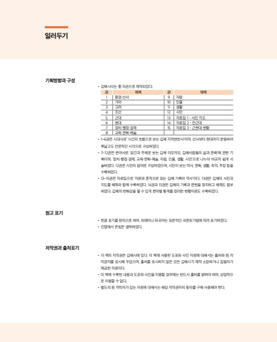 %uae30%ud68d%ubc29%ud5a5%uacfc %uad6c%uc131 %u2022%u0009%uae40%ud574%uc2dc%uc0ac%ub294 %ucd1d 15%uad8c%uc73c%ub85c %uc81c%uc791%ub418%uc5c8%ub2e4.%uad8c %uc81c%ubaa9 %uad8c %uc81c%ubaa91 %ud658%uacbd%u00b7%uc120%uc0ac 9 %uc790%ub7912 %uac00%uc57c 10 %uc778%ubb3c3 %uace0%ub824 11 %uc0dd%ud65c4 %uc870%uc120 12 %uc2dc%ubbfc5 %uadfc%ub300 13 %uc790%ub8cc%uc9d1 1 - %uc0ac%uc9c4%u00b7%uc9c0%ub3c46 %ud604%ub300 14 %uc790%ub8cc%uc9d1 2 - %uc804%uadfc%ub3007 %uc815%uce58%u00b7%ud589%uc815%u00b7%uacbd%uc81c 15 %uc790%ub8cc%uc9d1 3 - %uadfc%ud604%ub300%u00b7%ud604%ud6698 %uad50%uc721%u00b7%ubb38%ud654%u00b7%uc608%uc220%u2022%u00091~6%uad8c%uc740 %uc2dc%ub300%uc0ac%ub85c %u2018%uc2dc%uac04%uc758 %ud750%ub984%uc73c%ub85c %ubcf4%ub294 %uae40%ud574 %uc9c0%uc5ed%ubcc0%ucc9c%uc0ac%u2019%uc774%uba70, %uc120%uc0ac%ubd80%ud130 %ud604%ub300%uae4c%uc9c0 %ubd84%ub958%ud558%uc5ec%ud3ed%ub113%uace0%ub3c4 %uc804%ubb38%uc801%uc778 %uc2dc%uac01%uc73c%ub85c %uad6c%uc131%ud558%uc600%ub2e4.%u2022%u00097~12%uad8c%uc740 %ubd84%uc57c%uc0ac%ub85c %u2018%uacf5%uac04%uacfc %uc8fc%uccb4%ub85c %ubcf4%ub294 %uae40%ud574 %uc774%ubaa8%uc800%ubaa8, %uae40%ud574%uc0ac%ub78c%ub4e4%uc758 %uc0b6%uacfc %ubb38%ud654%u2019%uc5d0 %uad00%ud55c %uae30%ub85d%uc774%uba70, %u2018%uc815%uce58%u00b7%ud589%uc815%u00b7%uacbd%uc81c, %uad50%uc721%u00b7%ubb38%ud654%u00b7%uc608%uc220, %uc790%ub791, %uc778%ubb3c, %uc0dd%ud65c, %uc2dc%ubbfc%u2019%uc73c%ub85c %ub098%ub204%uc5b4 %ube44%uad50%uc801 %uc27d%uac8c %uc11c%uc220%ud558%uc600%ub2e4. 12%uad8c%uc740 %uc2dc%ubbfc%uc758 %ucc38%uc5ec%ub85c %uad6c%uc131%ud558%uc600%uc73c%uba70, %uc2dc%ubbfc%uc774 %ubcf4%ub294 %uc5ed%uc0ac, %ubb38%ud654, %uc0dd%ud65c, %ucd94%uc5b5, %uc8fc%uc7a5 %ub4f1%uc744%uc218%ub85d%ud558%uc600%ub2e4.%u2022%u000913~15%uad8c%uc740 %uc790%ub8cc%uc9d1%uc73c%ub85c %u2018%uc790%ub8cc%uc640 %ud754%uc801%uc73c%ub85c %uc77d%ub294 %uae40%ud574 %uae30%ub85d%uc758 %uc5ed%uc0ac%u2019%uc774%ub2e4. 13%uad8c%uc740 %uae40%ud574%uc758 %uc0ac%uc9c4%uacfc%uc9c0%ub3c4%ub97c %ud574%uc81c%uc640 %ud568%uaed8 %uc218%ub85d%ud558%uc600%ub2e4. 14%uad8c%uacfc 15%uad8c%uc740 %uae40%ud574%uc758 %uae30%ub85d%uacfc %ubb38%ud5cc%uc744 %uc815%ub9ac%ud558%uace0 %ud574%uc81c%ub3c4 %ucca8%ubd80%ud558%uc600%ub2e4. %uae40%ud574%uc758 %ubcc0%ud654%uc0c1%uc744 %ubcfc %uc218 %uc788%uac8c %ubd84%uc57c%ubcc4 %ud1b5%uacc4%ub97c %uc815%ub9ac%ud55c %ud604%ud669%uc790%ub8cc%ub3c4 %uc218%ub85d%ud558%uc600%ub2e4.%uc6d0%uace0 %ud45c%uae30%u2022%u0009%ud55c%uae00 %ud45c%uae30%ub97c %uc6d0%uce59%uc73c%ub85c %ud558%uba70, %uc678%ub798%uc5b4%ub098 %uc678%uad6d%uc5b4%ub294 %ud45c%uc900%uc801%uc778 %uad6d%ubb38%ud45c%uae30%ubc95%uc5d0 %ub530%ub77c %ud45c%uae30%ud558%uc600%ub2e4.%u2022%u0009%uc778%uba85%uc5d0%uc11c %uc874%uce6d%uc740 %uc0dd%ub7b5%ud558%uc600%ub2e4.%uc800%uc791%uad8c%uacfc %ucd9c%ucc98%ud45c%uae30%u2022%u0009%uc774 %ucc45%uc758 %uc800%uc791%uad8c%uc740 %uae40%ud574%uc2dc%uc5d0 %uc788%ub2e4. %uc774 %ucc45%uc5d0 %uc0ac%uc6a9%ub41c %ub3c4%ud45c%uc640 %uc0ac%uc9c4 %uc790%ub8cc%uc5d0 %ub300%ud574%uc11c%ub294 %ucd9c%ucc98%uc640 %uc6d0 %uc800%uc791%uad8c%uc790%ub97c %ud45c%uc2dc%ud574 %ub450%uc5c8%uc73c%uba70, %ucd9c%ucc98%ub97c %ud45c%uc2dc%ud558%uc9c0 %uc54a%uc740 %uac83%uc740 %uae40%ud574%uc2dc%uac00 %uc81c%uc791%u00b7%uc18c%uc7a5%ud558%uac70%ub098 %uc9d1%ud544%uc790%uac00%uc81c%uacf5%ud55c %uc790%ub8cc%uc774%ub2e4.%u2022%u0009%uc774 %ucc45%uc5d0 %uc218%ub85d%ub41c %ub0b4%uc6a9%uacfc %ub3c4%ud45c%uc640 %uc0ac%uc9c4%uc744 %uc774%uc6a9%ud560 %uacbd%uc6b0%uc5d0%ub294 %ubc18%ub4dc%uc2dc %ucd9c%ucc98%ub97c %ubc1d%ud600%uc57c %ud558%uba70, %uc0c1%uc5c5%uc801%uc73c%ub85c %uc774%uc6a9%ud560 %uc218 %uc5c6%ub2e4.%u2022%u0009%ubcc4%ub3c4%uc758 %uc6d0 %uc800%uc791%uc790%uac00 %uc788%ub294 %uc790%ub8cc%uc5d0 %ub300%ud574%uc11c%ub294 %ud574%ub2f9 %uc800%uc791%uad8c%uc790%uc758 %ub3d9%uc758%ub97c %uad6c%ud574 %uc0ac%uc6a9%ud574%uc57c %ud55c%ub2e4.%uc77c%ub7ec%ub450%uae30