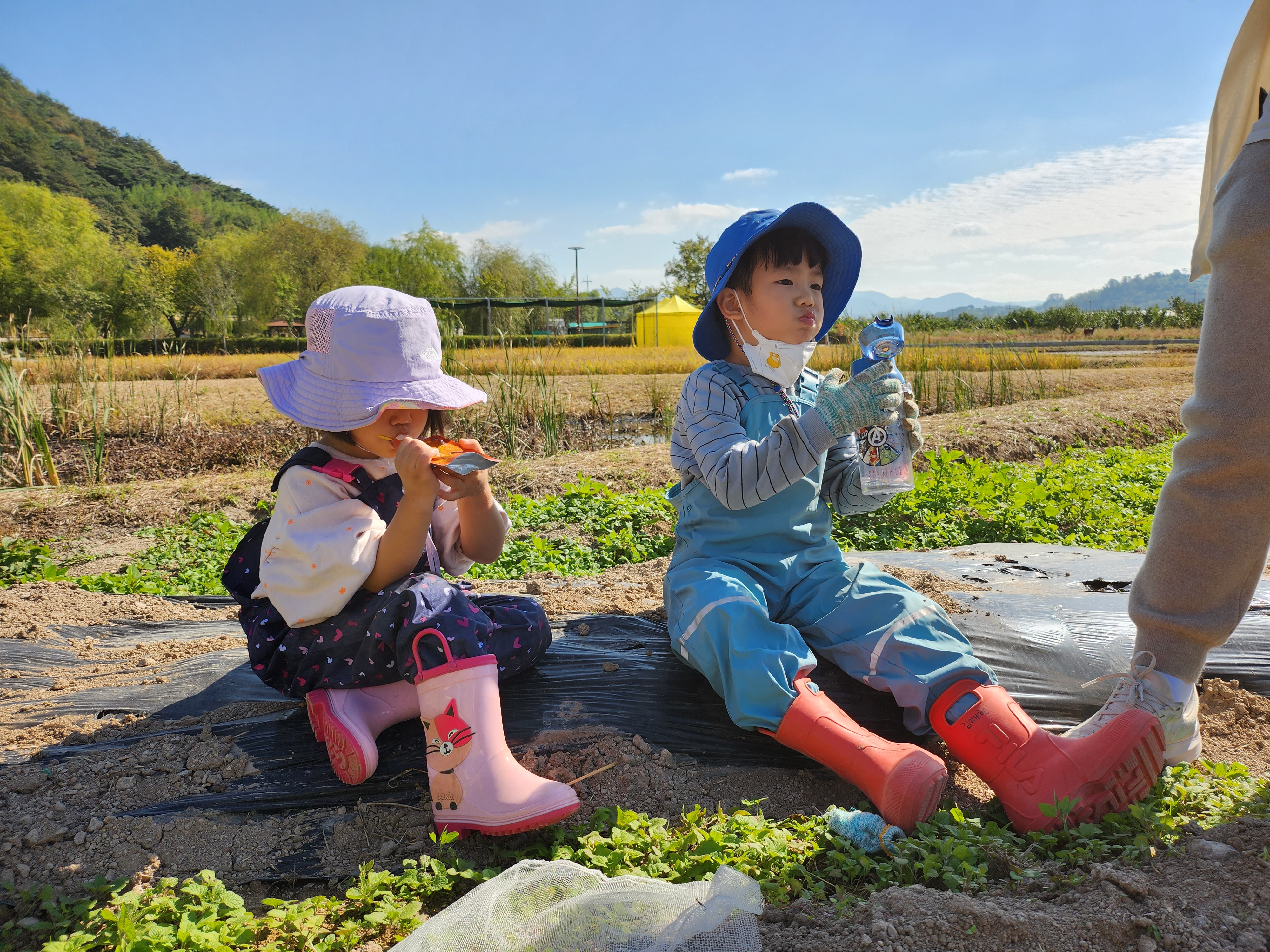 유치원 체험가면 한개씩 숨겨놓고 보물찾기 하듯 찾았는데 봉하마을에서는 너무 고구마가 크고 많았어요