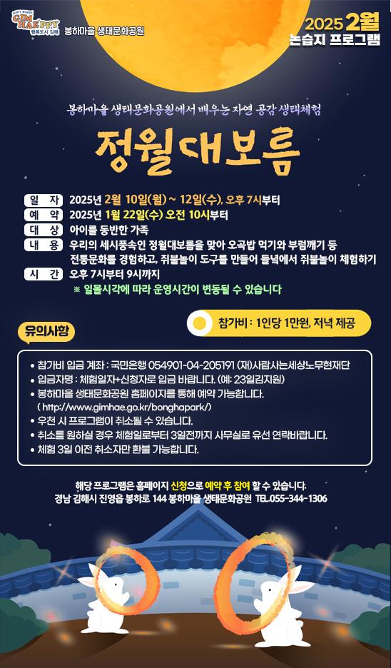 • 정월대보름 2025-02-11 (화) 오후 7시 ~ 9시 정원 : 40명 입장료 : 10,000원