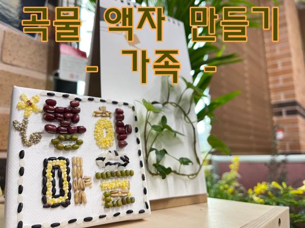 • [개인 및 가족 체험] 곡물 액자 만들기(가족) 예약접수 : 2021-05-06 목요일 10 시 ~ 2021-05-21 금요일 17시 5월 시간 : 비대면 프로그램 대상 : 가족 정원 : 각 40명 입장료 : 7,000원