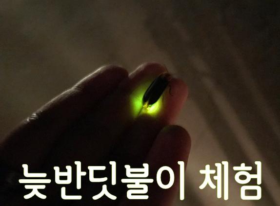 • [개인 및 가족 체험] 늦반딧불이 체험 예약접수 : 2018-09-01 토요일 10 시 ~ 2018-09-01 토요일 11시 9월 14일(금), 15일(토), 16일(일), 19(수), 20(목) 시간 : 오후 6시 30분 ~ 오후 9시 대상 : 가족 정원 : 각 40명 입장료 : 8,000원