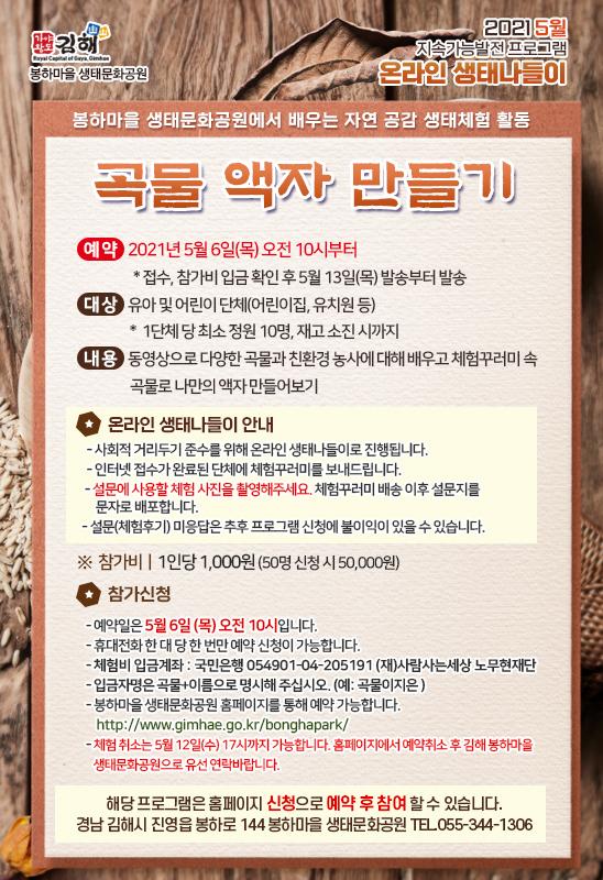 • 곡물 액자 만들기(단체) 2021-05-21 (금) 접수가능횟수 : 40 입장료 : 1,000원