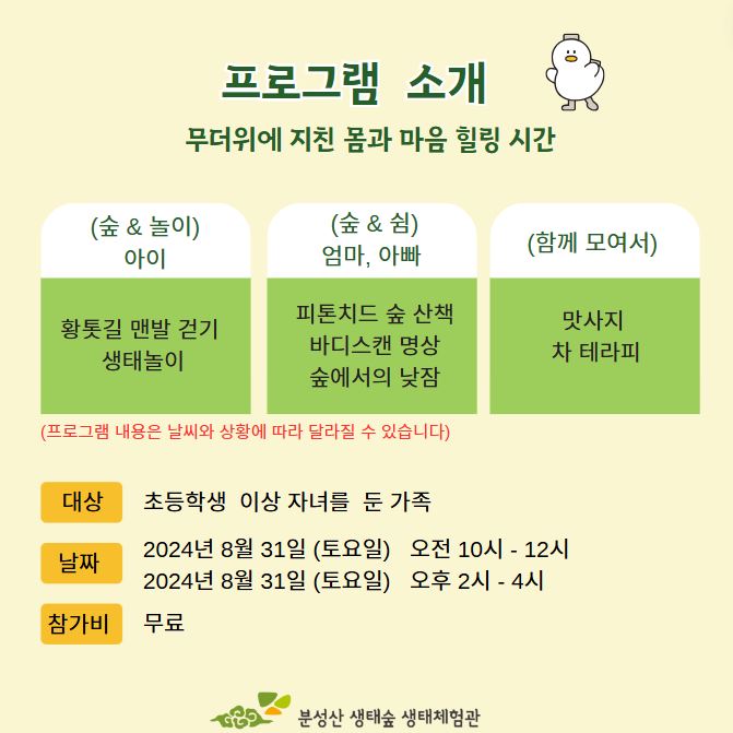 분성산생태숲 홈페이지 <산림치유프로그램 < 예약하기 (8월)
