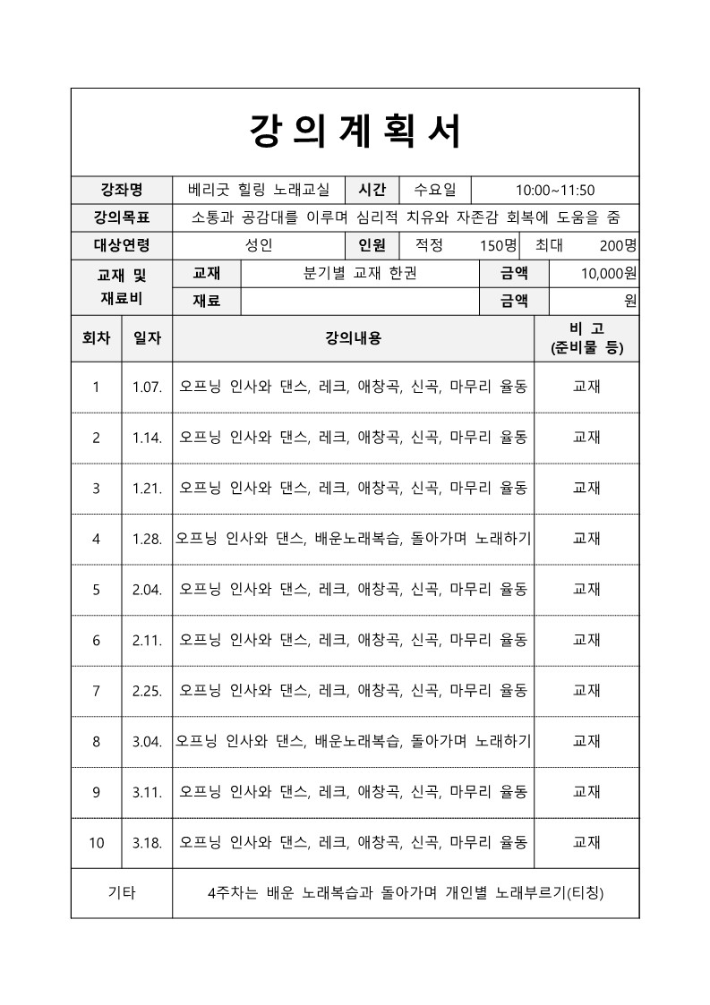 진영한빛도서관 베리굿 힐링 노래교실(26년 1분기)