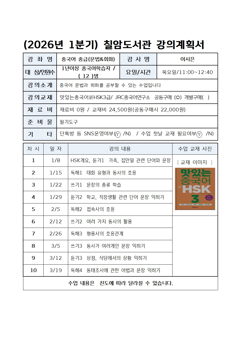 -.강의 계획서를 다운받아 주세요. 수업 일정은 강의 계획서에 따라 진행되며 변동사항이 있을 시에만 따로 문자 등으로 연락을 드립니다.
