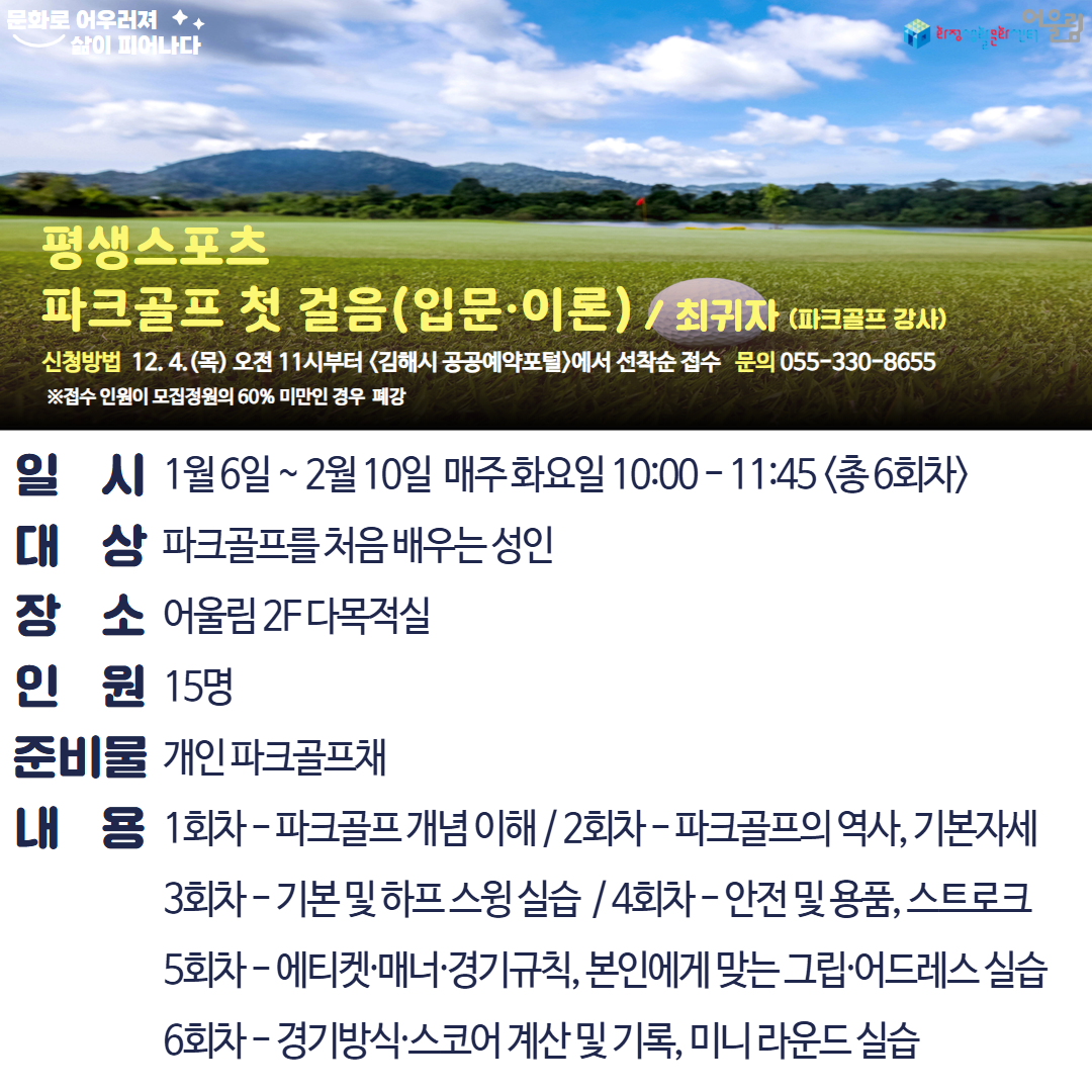 화정생활문화센터 어울림 [겨울방학_성인] 평생스포츠, 파크골프 첫 걸음