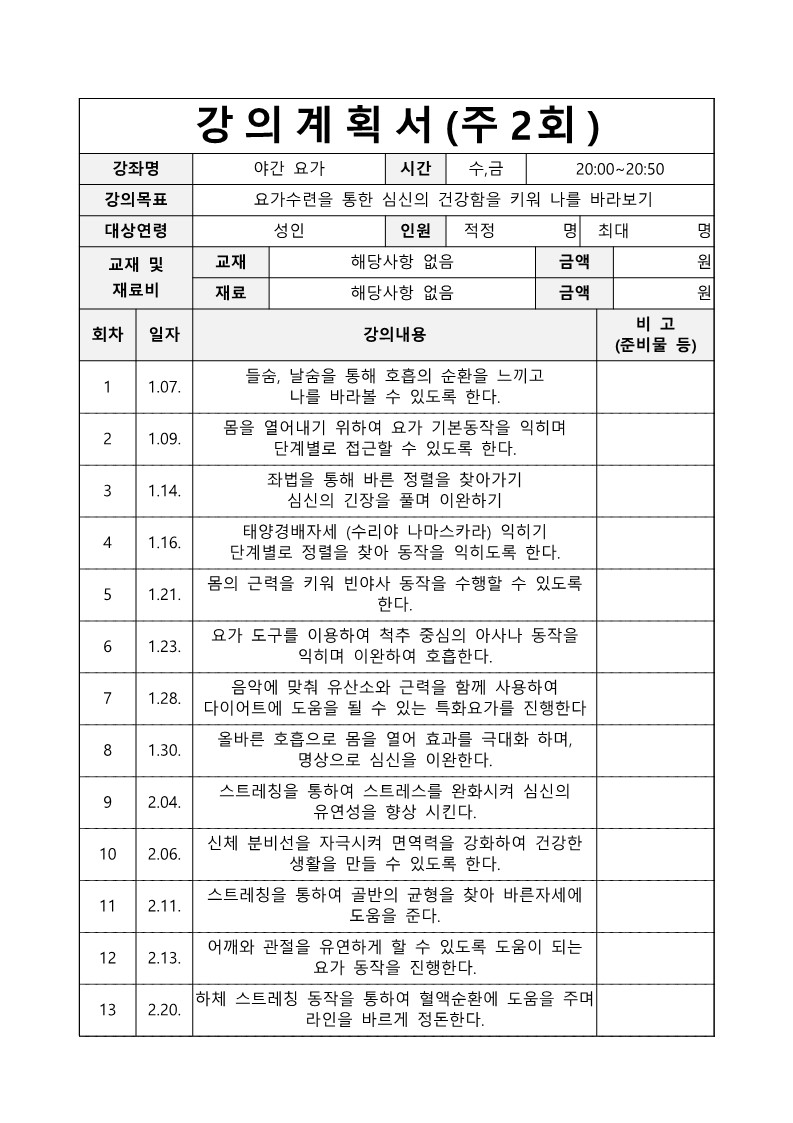 ※ 주 2회 수업으로 운영됩니다. (수요일, 금요일 20:00~20:50)
