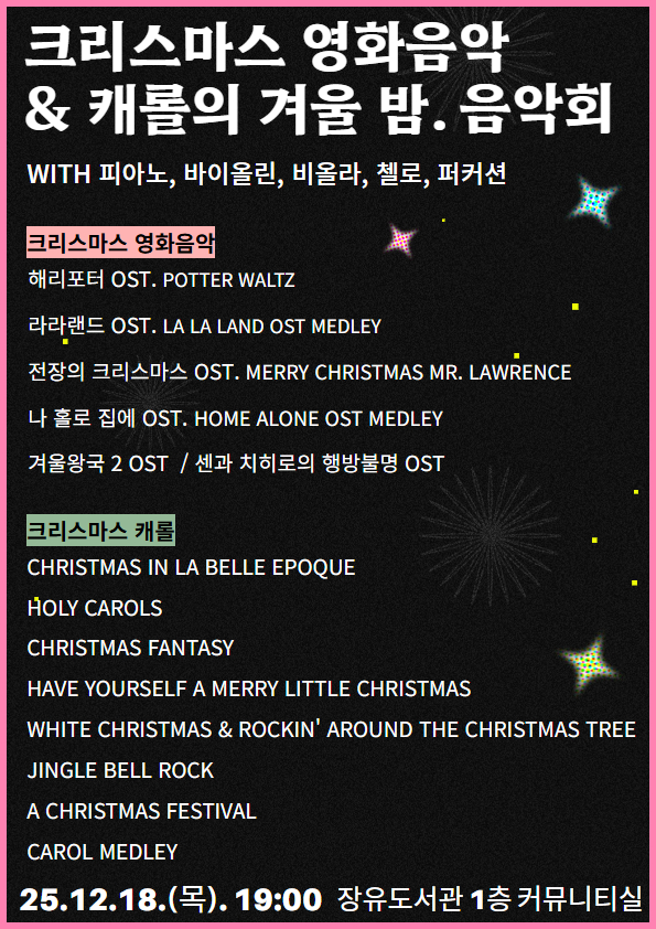 장유도서관 크리스마스 영화음악 & 캐롤의 겨울 밤 음악회