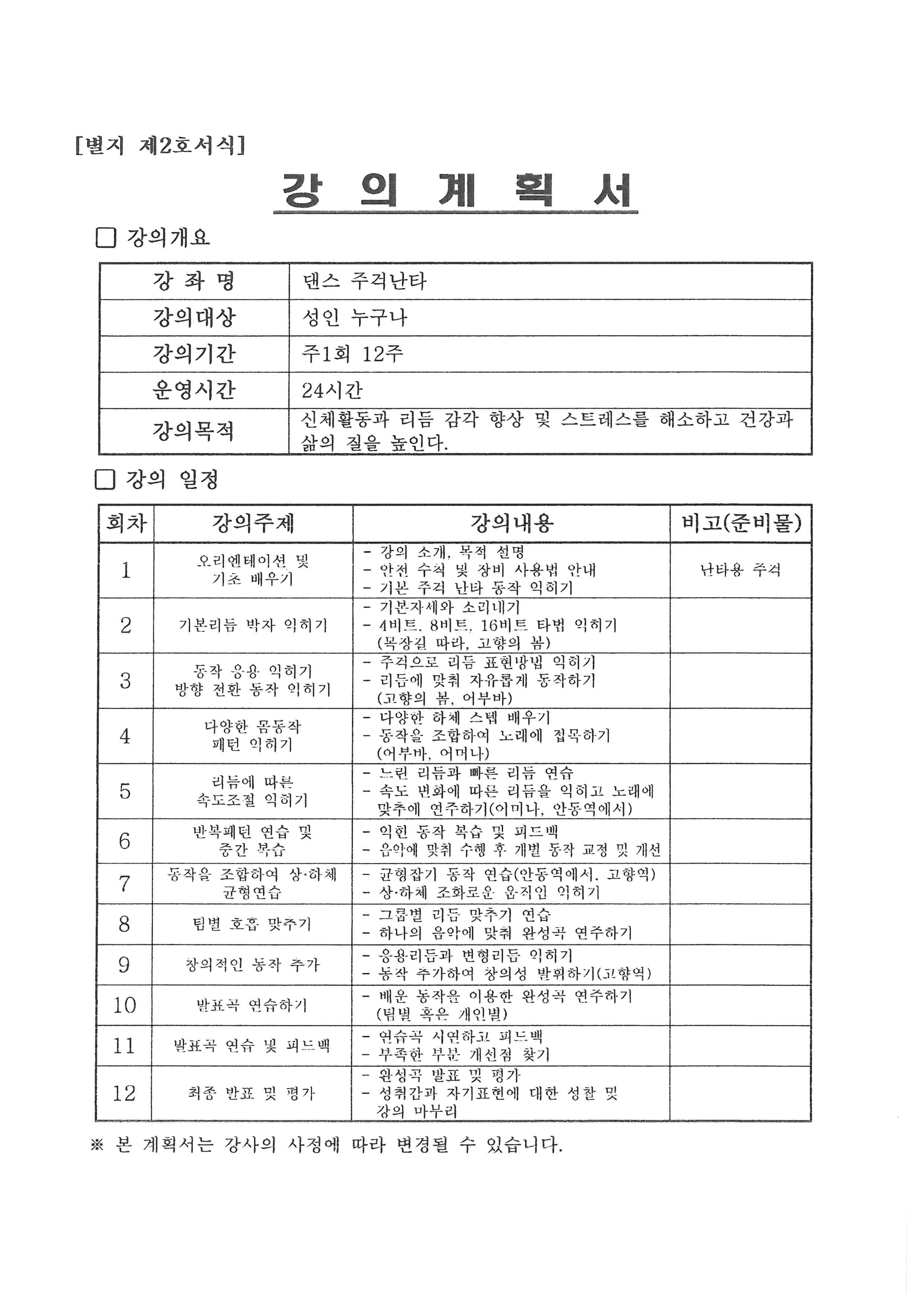 장유1동 주민자치센터 댄스주걱난타