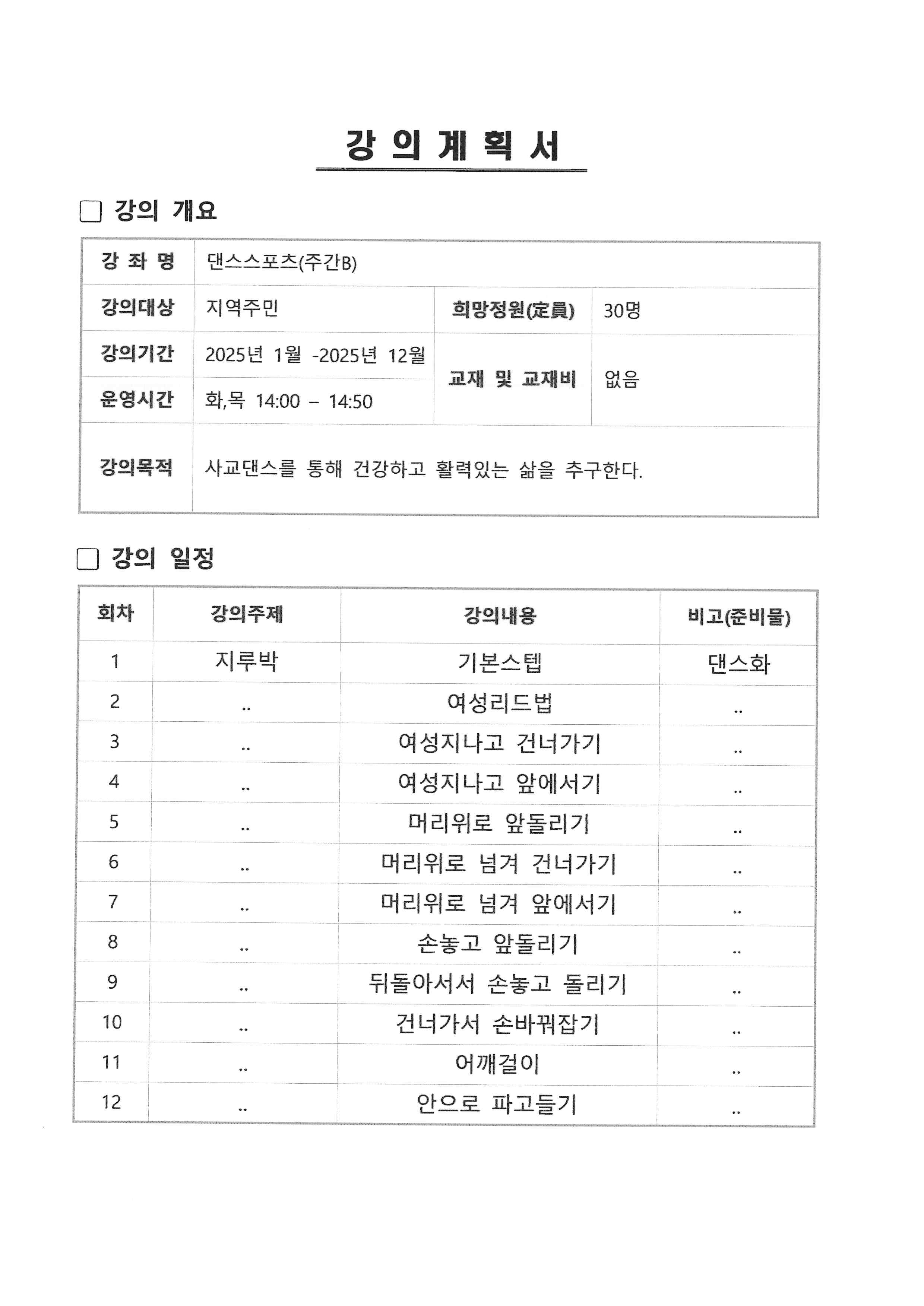 장유1동 주민자치센터 댄스스포츠(주간B)