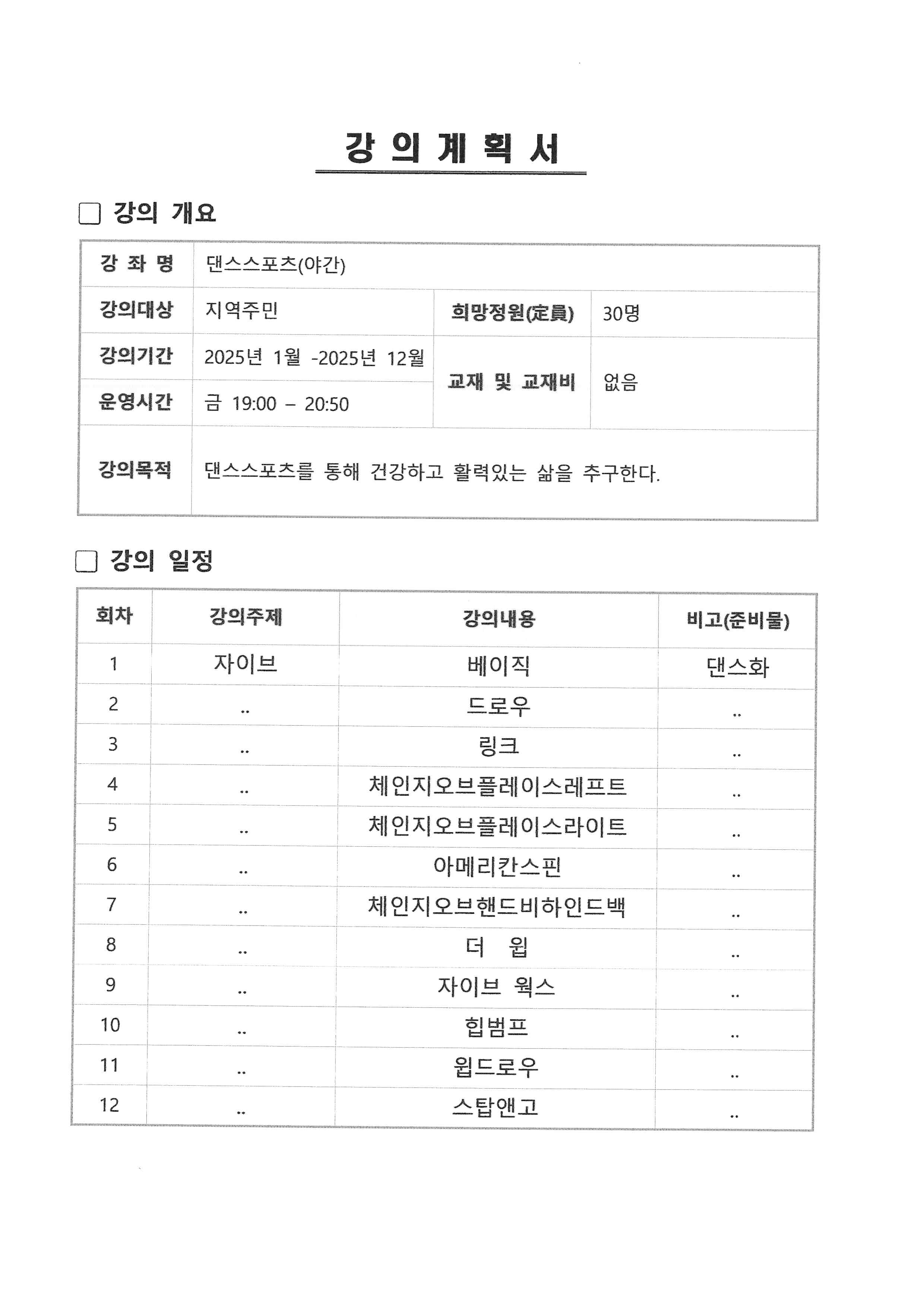 장유1동 주민자치센터 댄스스포츠(야간반)